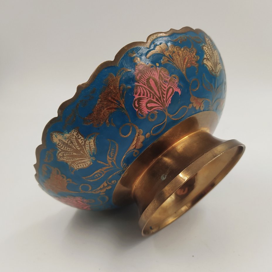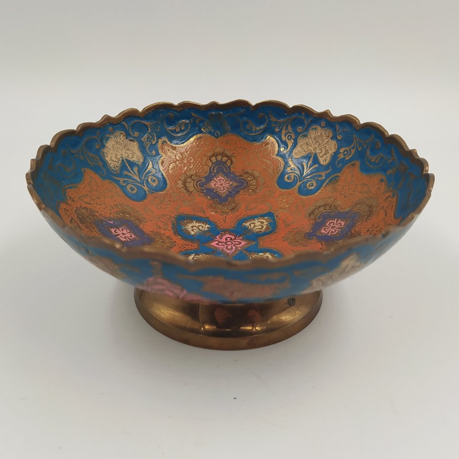 Конфетница с растительным орнаментом в ориентальном стиле, латунь, эмалевые краски, Индия, 1960-1990 гг.