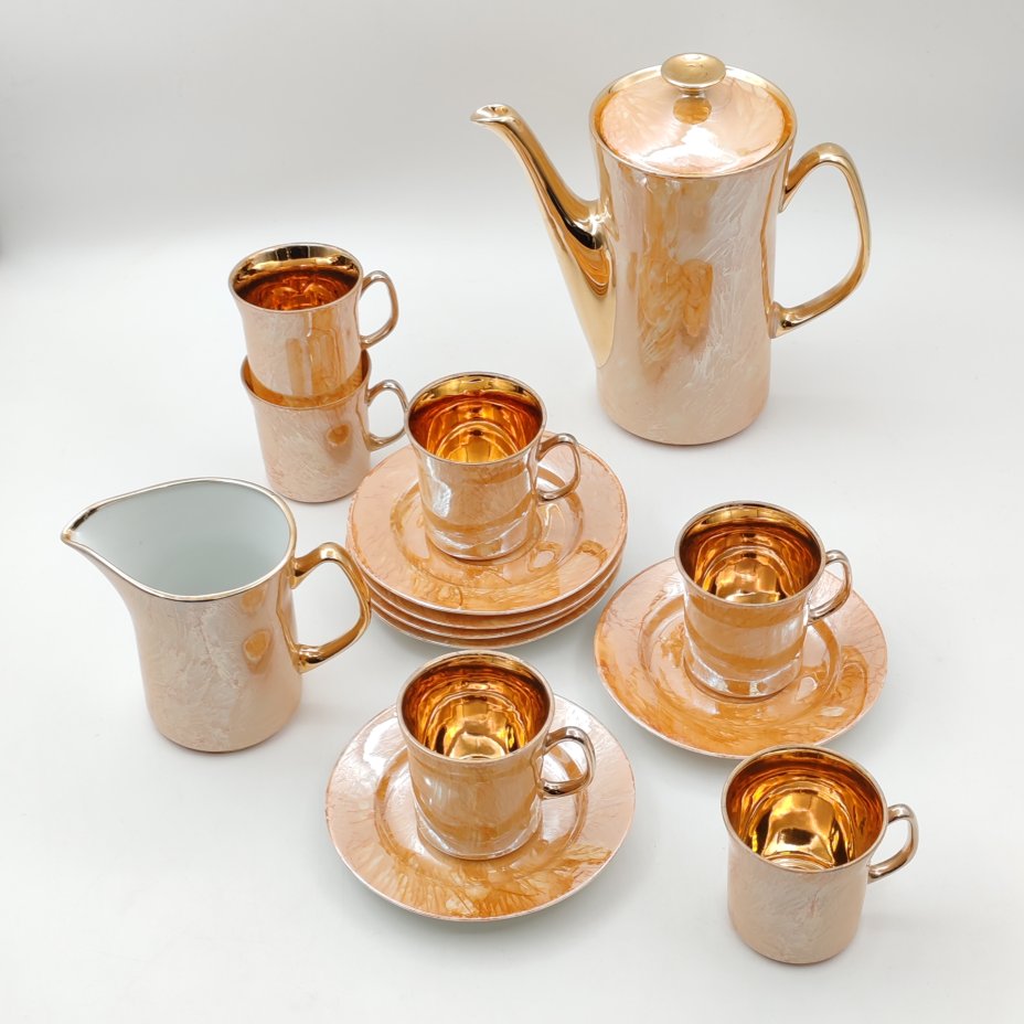 Горчичница с растительным декором, фарфор, крытье, золочение, люстр, деколь, Fortuna Eisenberg, ГДР, 1960-1973 гг.