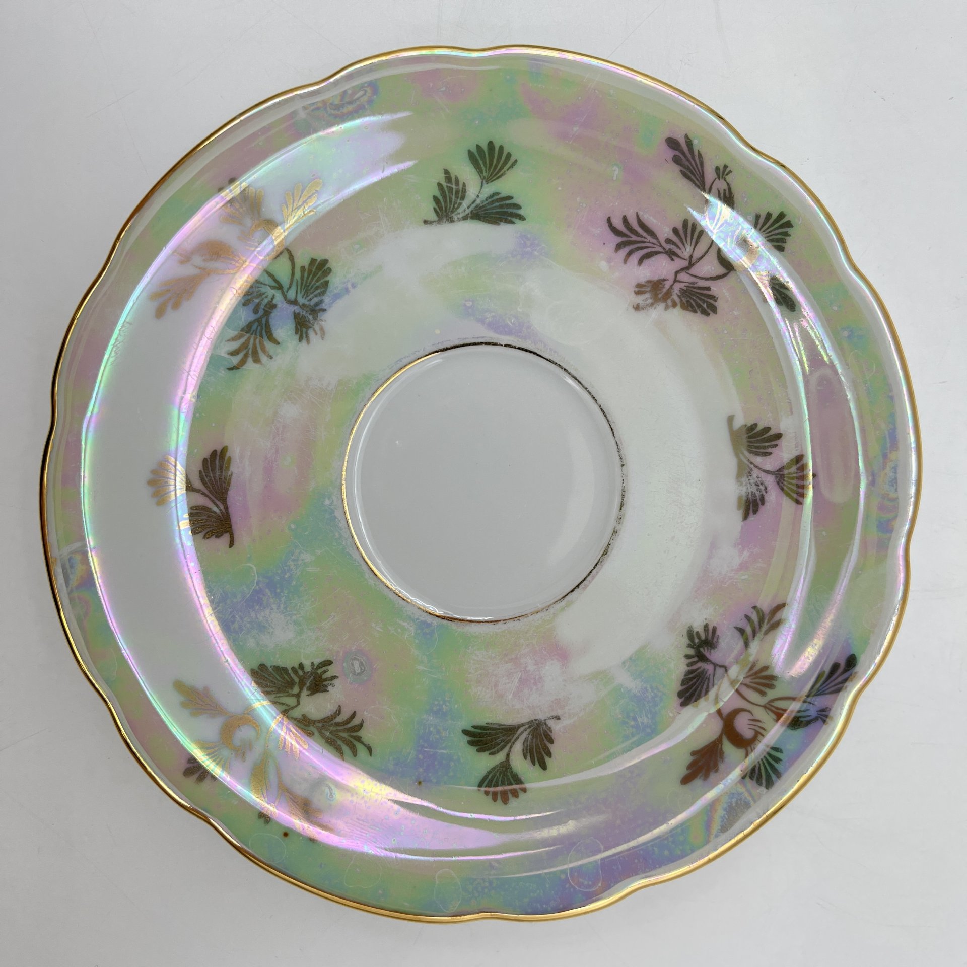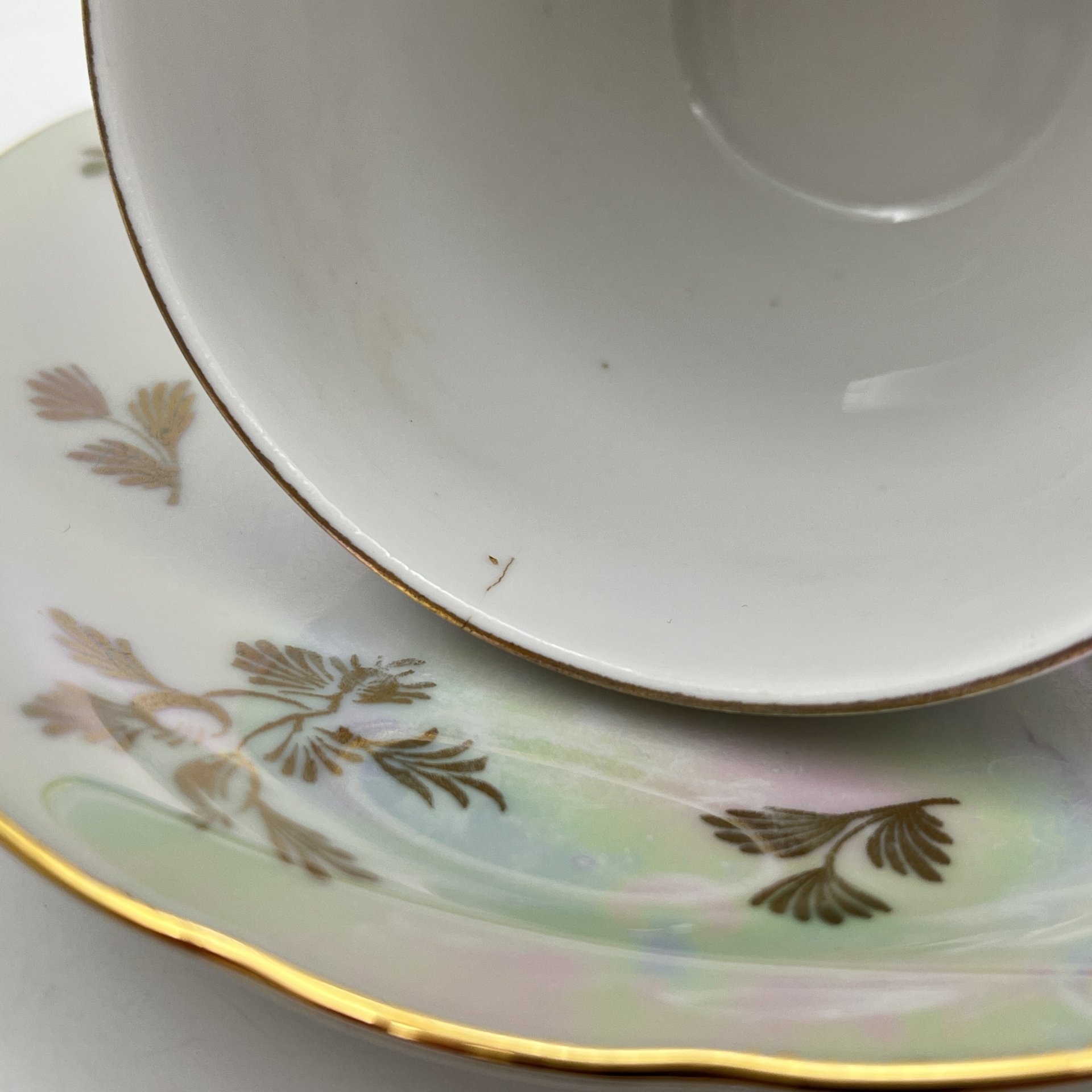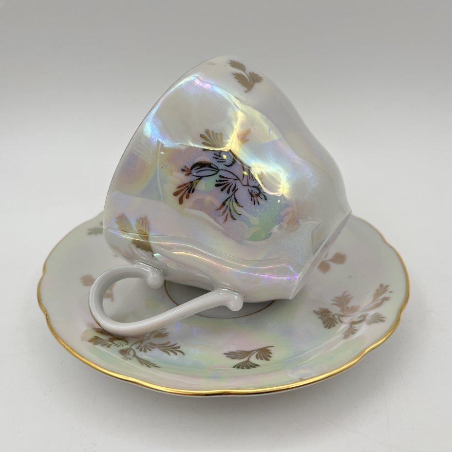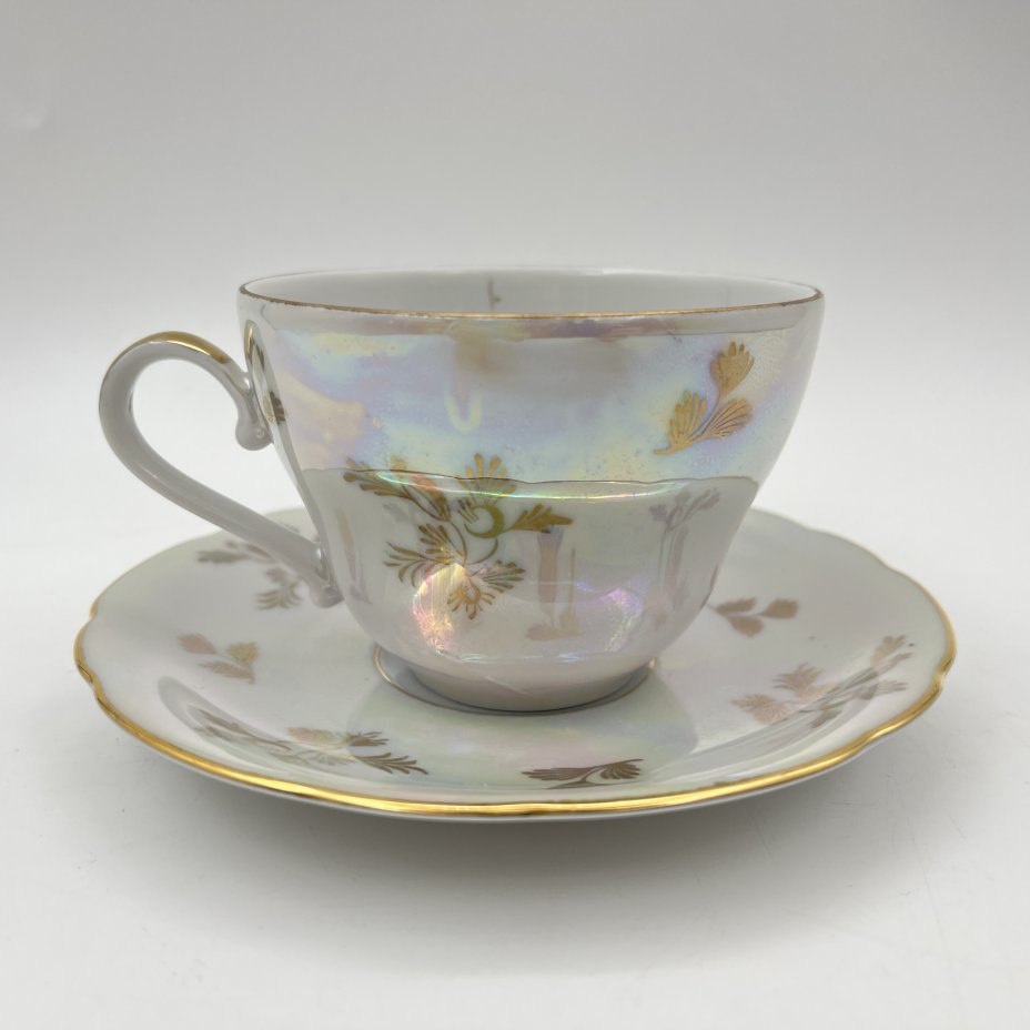 Чайная пара, Fire-King Anchor Hocking, стекло, молочное, золочение, США, 1950-1990 гг.