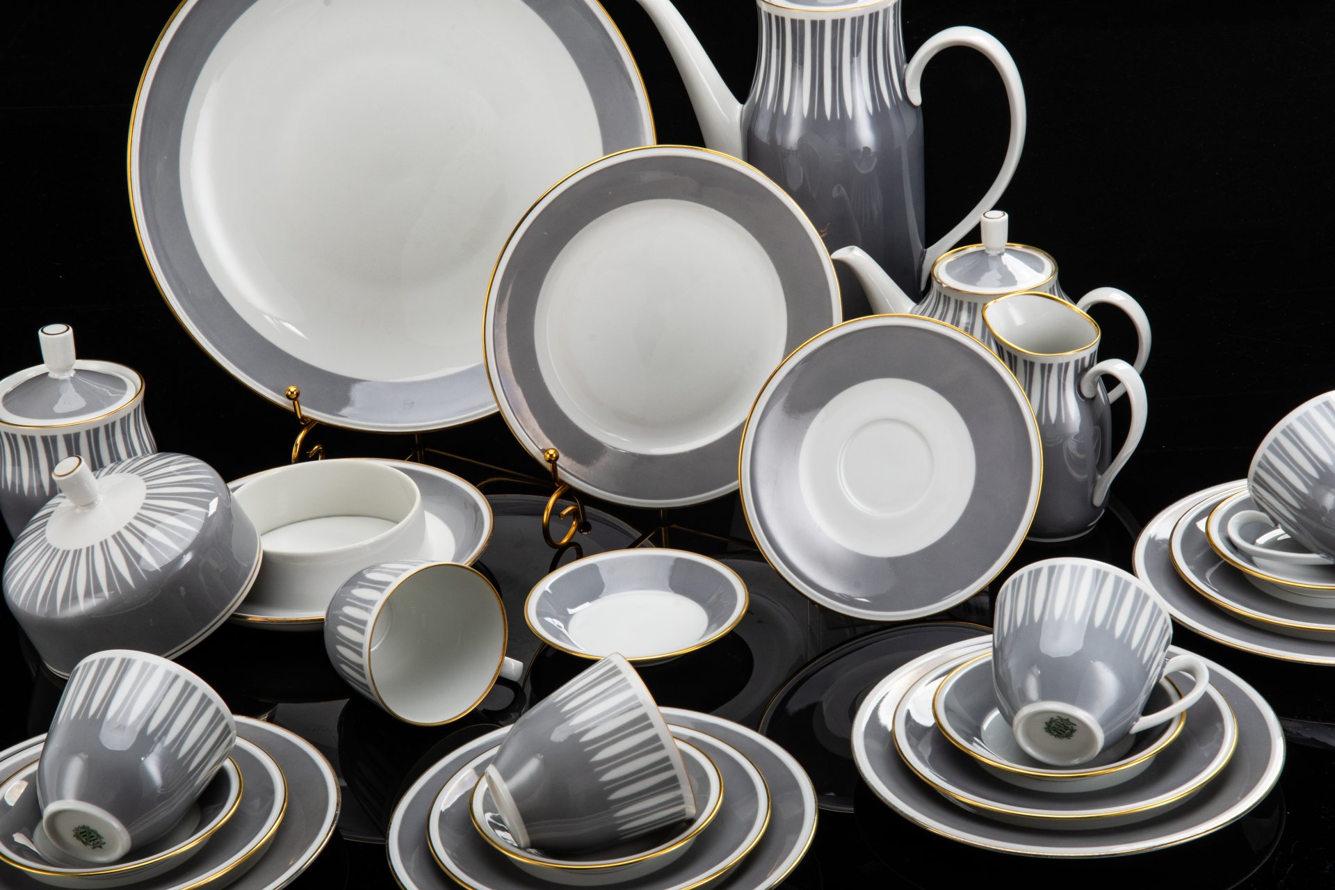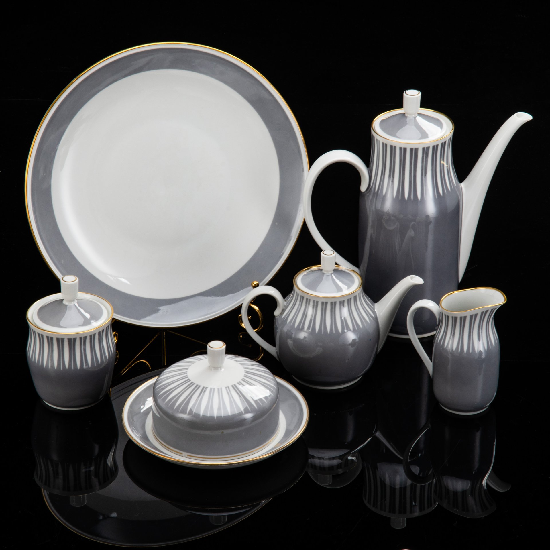 Набор чайно-кофейный "Halka" c геометрическим декором 2 персоны (11 предметов), фарфор, деколь, Graf Von Henneberg Porzellan, 1777 Jlmenau, Германия, 1970-1990 гг.