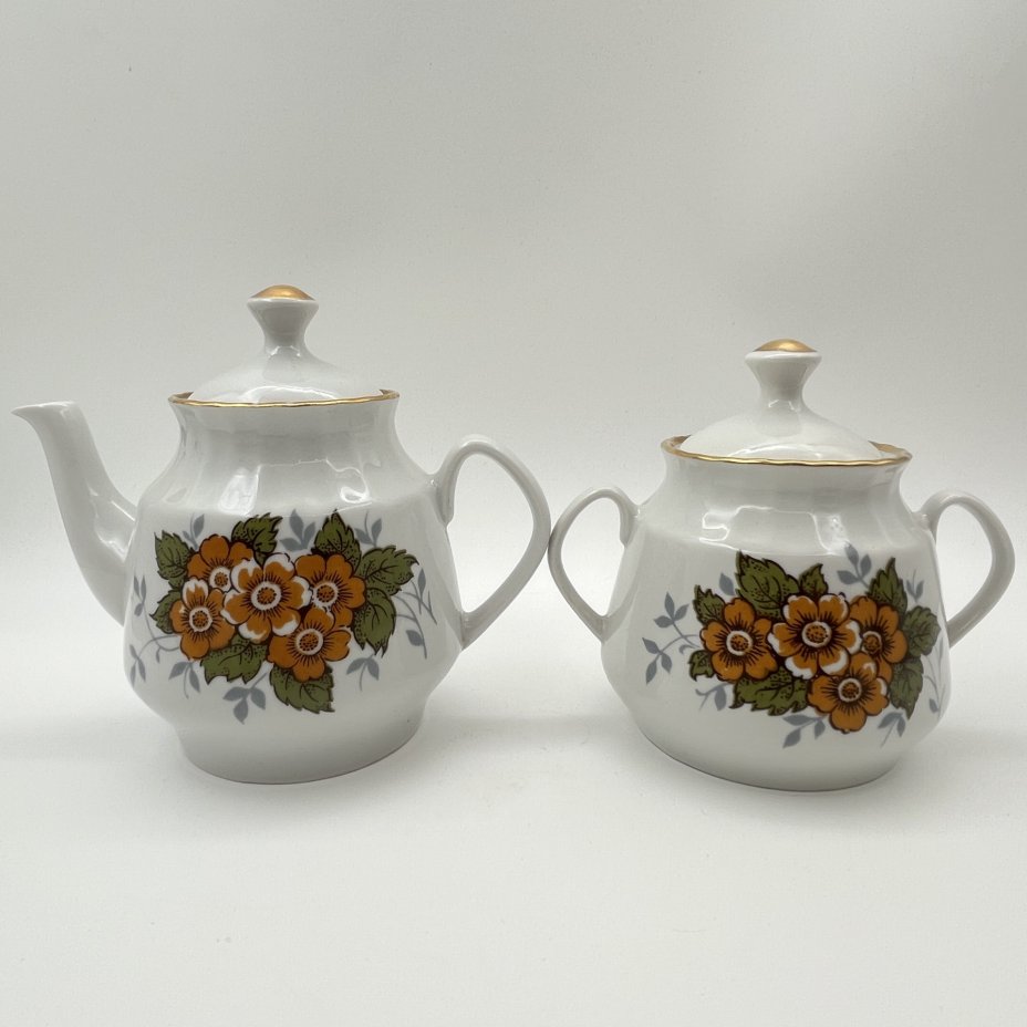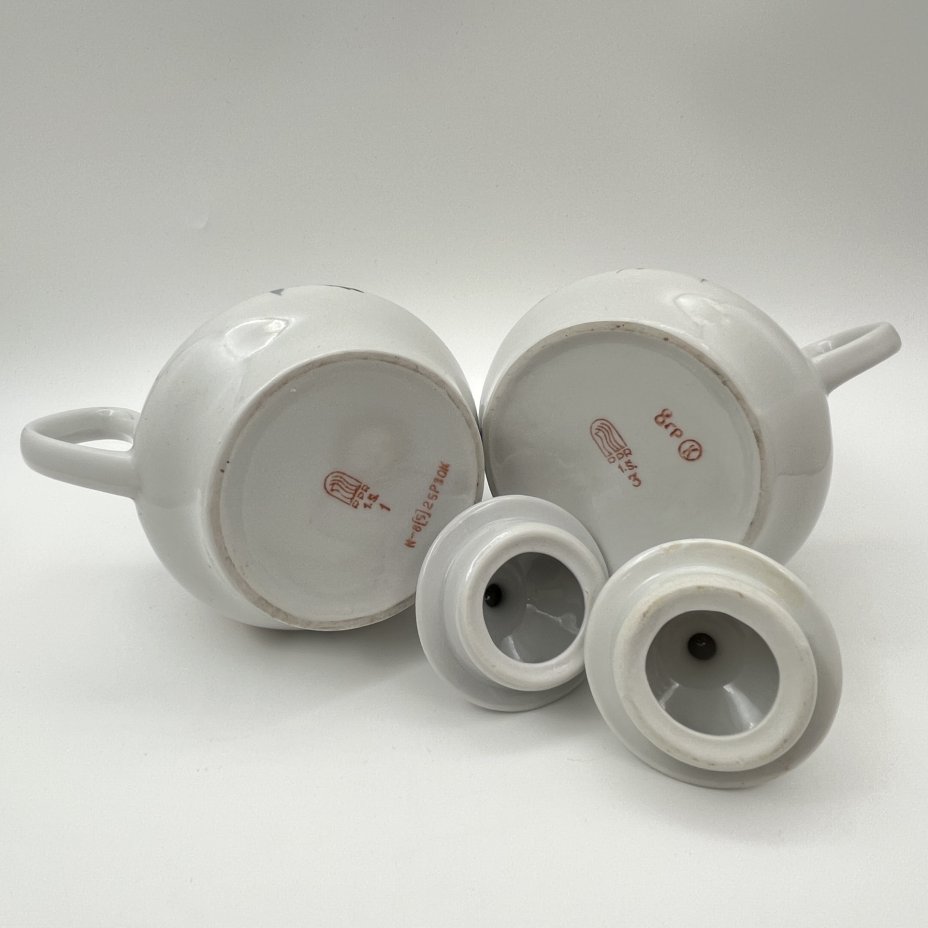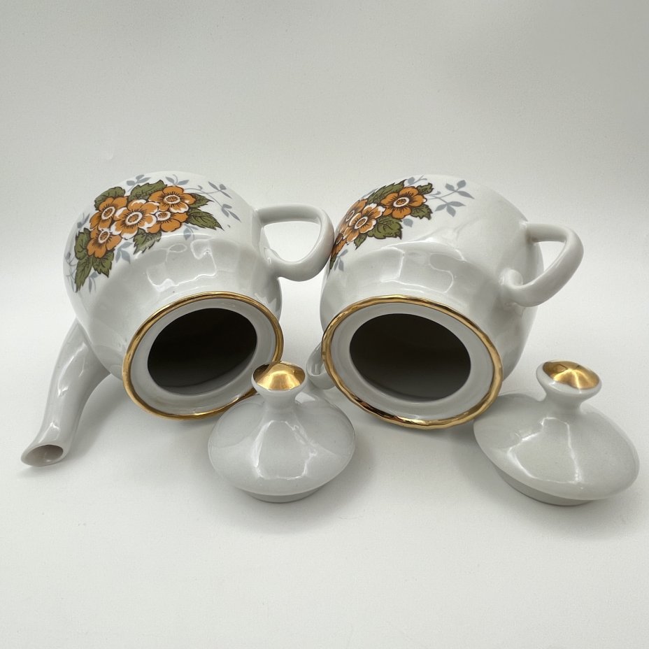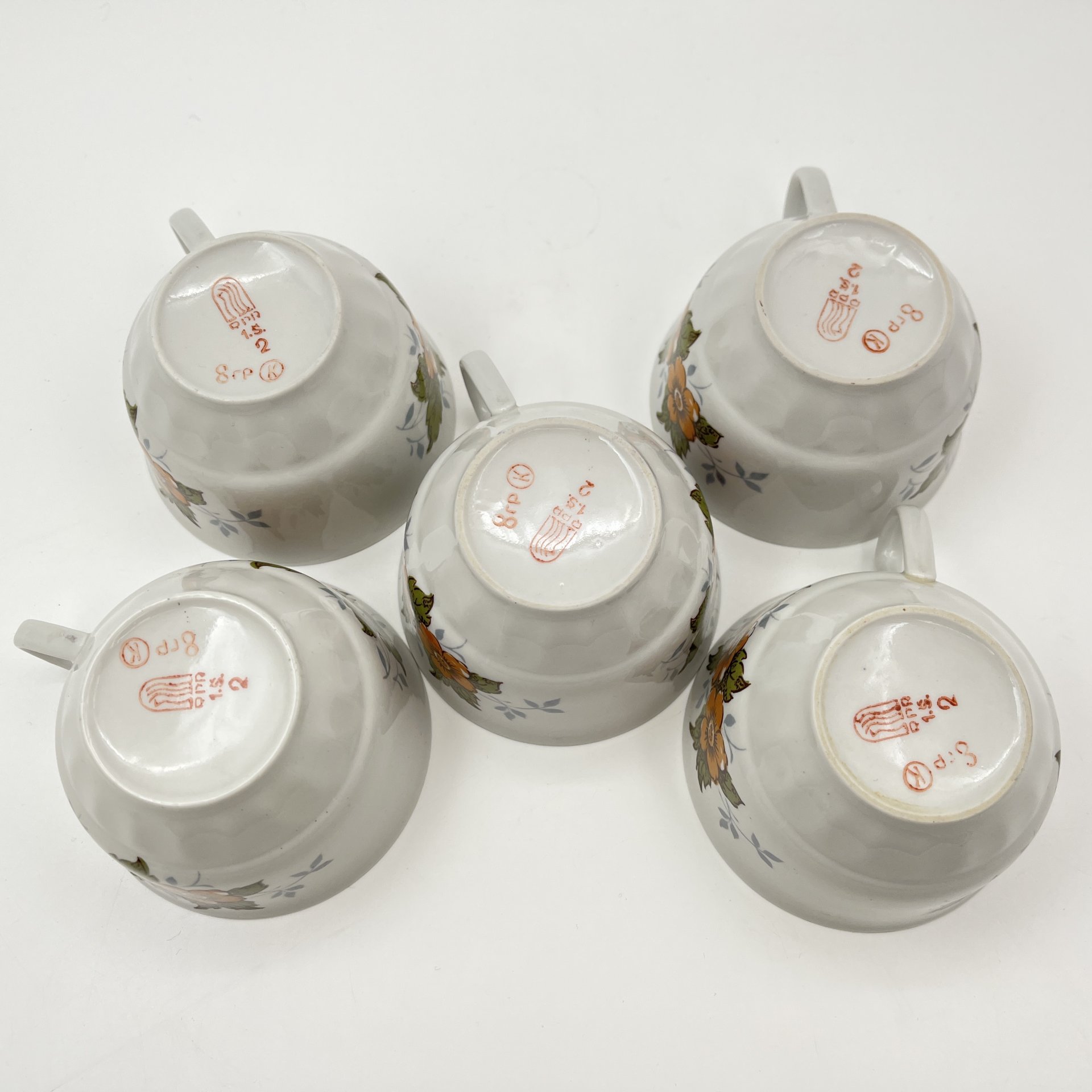 Сервиз чайно-кофейный на 6 персон, украшенный растительным декором, керамика, глазурь, роспись, СССР, 1970-1990 гг.