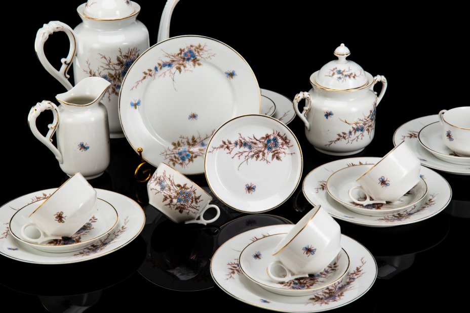 Сервиз чайно-кофейный "Черная роза" на 4 персоны (22 предмета), фарфор, деколь, золочение, Freiberg Porzellan, ГДР, 1970-1979 гг.