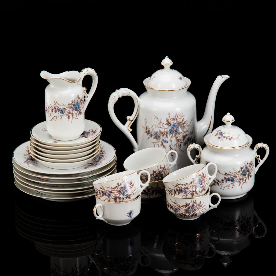 Кофейный сервиз в стиле Ампир на 12 персон, "limoges", фарфор, крытье, золочение, Франция, 1950-1980 гг.