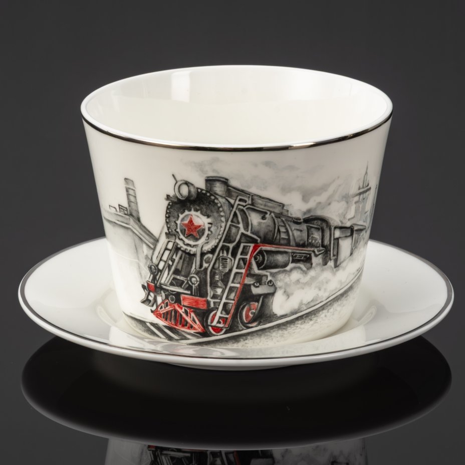 Купить Чайная пара "Железная дорога", фарфор, роспись, серебрение, Российская Федерация, 2025 г.