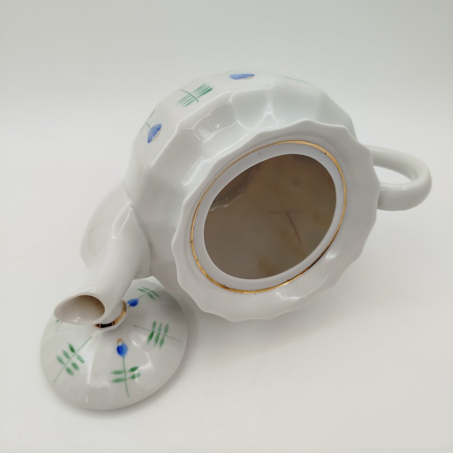 Сервиз чайный с растительным декором на 4 персоны (чайник, сахарница, 4 чайные пары), фарфор, роспись, золочение, Volkstedt Beyer & Bock, ГДР, 1960-1980 гг.