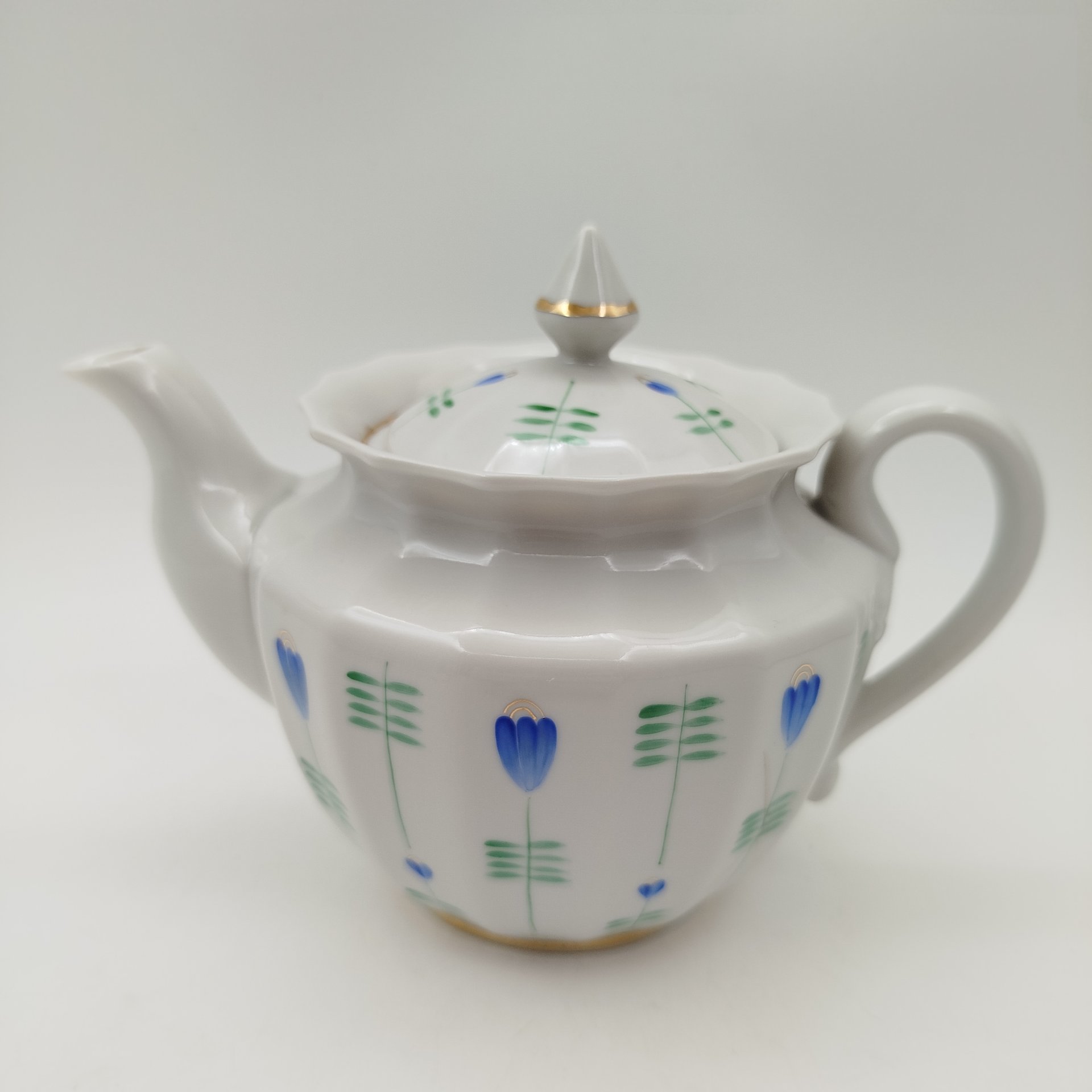 Сервиз чайный с цветочно-растительным декором на 4 персоны (11 предметов), фарфор, роспись, золочение, Минский фарфорово-фаянсовый завод, СССР, 1968-1983 гг.