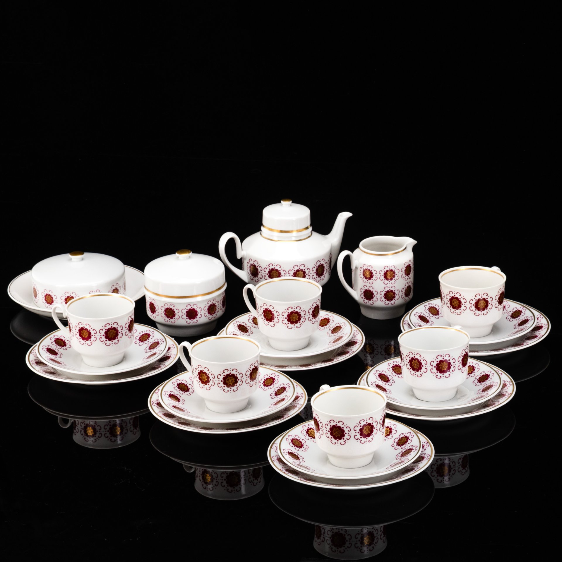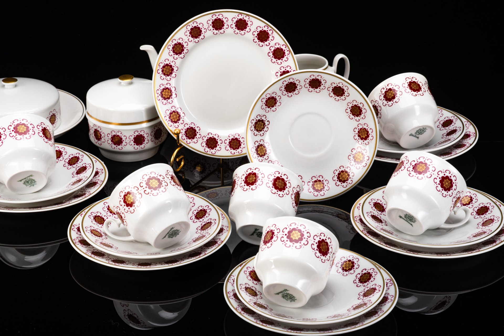 Чайный сервиз с орнаментальным декором на 6 персон (24 предмета), фарфор, деколь, золочение, мануфактура "Weimar", Германия, 1948-1980 гг.