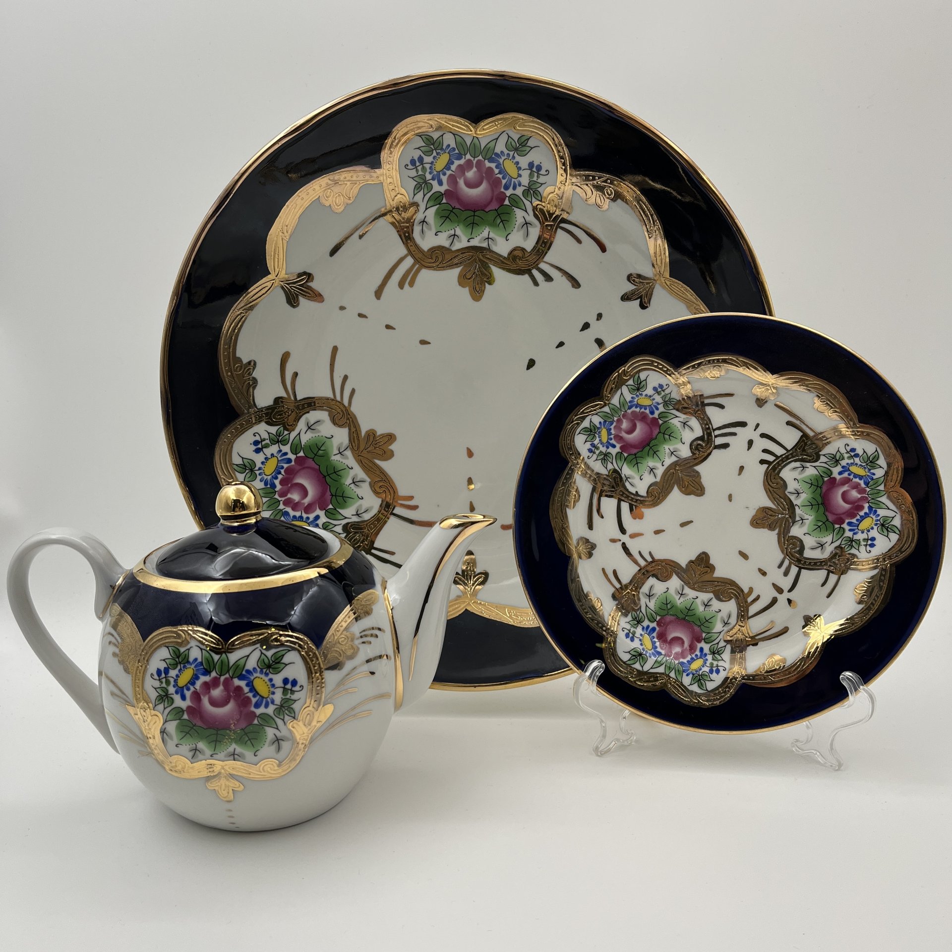 Набор чайный с золотистым декором в восточном стиле, фарфор, золочение, Limoges, Франция, 1970-1990 гг.