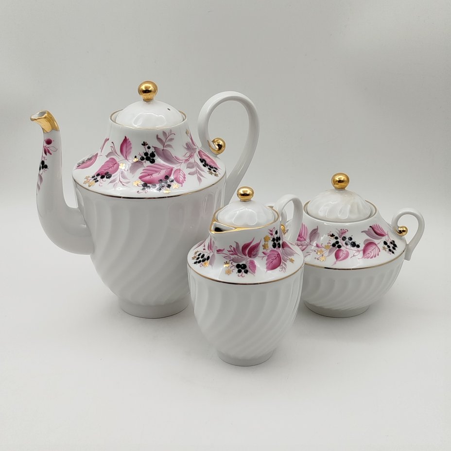 Кофейная тройка с растительным декором, фарфор, золочение, крытье, деколь, Stadtilmer Porzellan, ГДР, 1950-1970 гг.