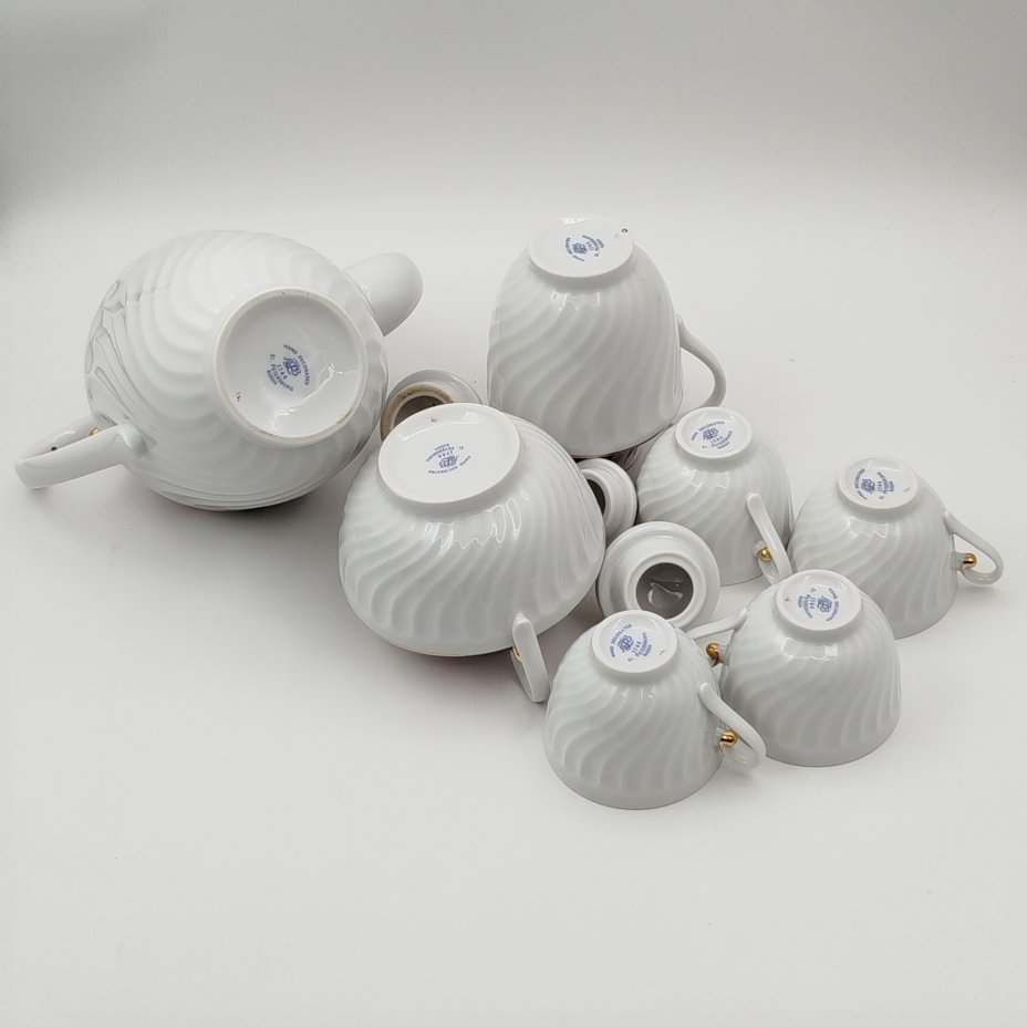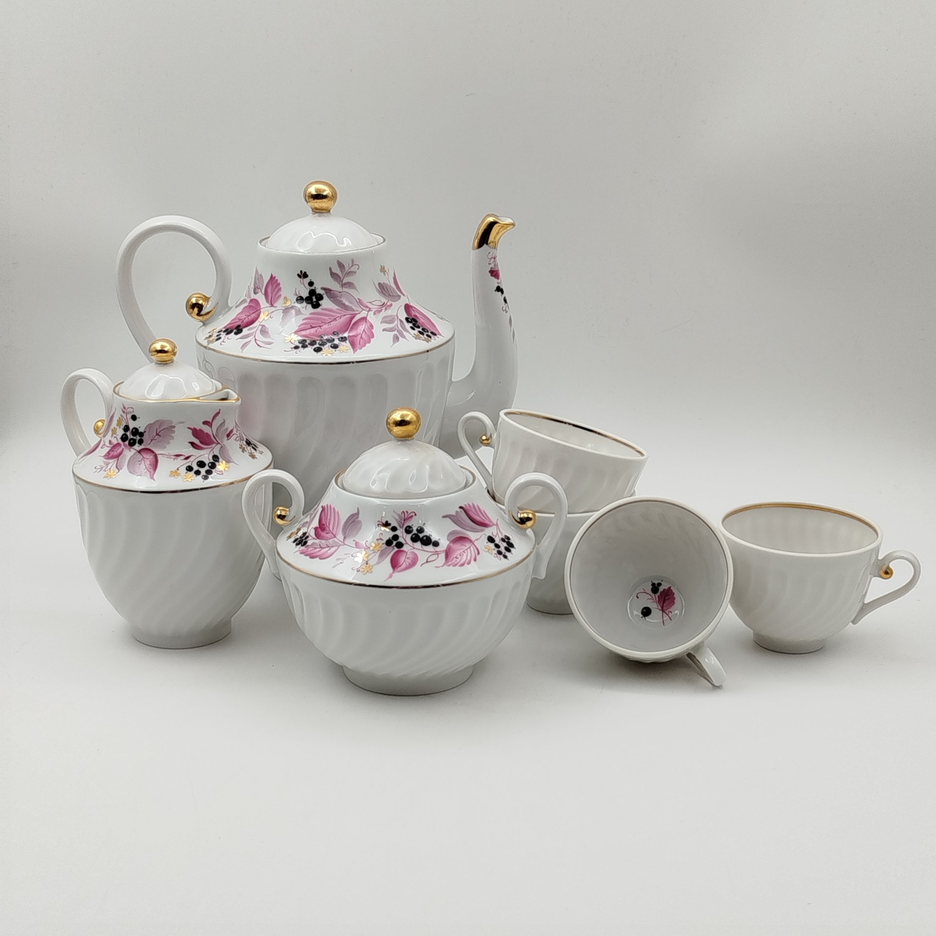 Сервиз чайный со стилизованным цветочным декором на 5 персон (19 предметов), завод "Lubiana", фарфор, деколь, золочение, Польша, 1966-1994 гг.