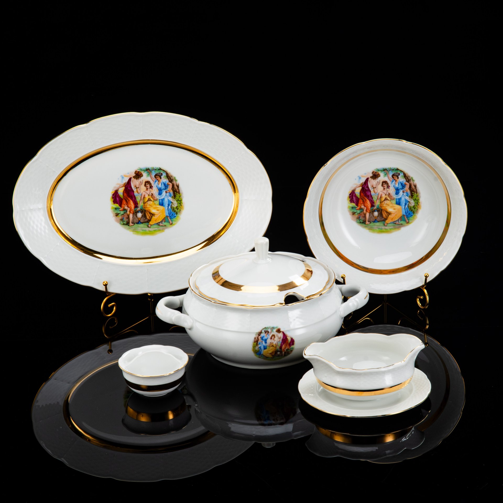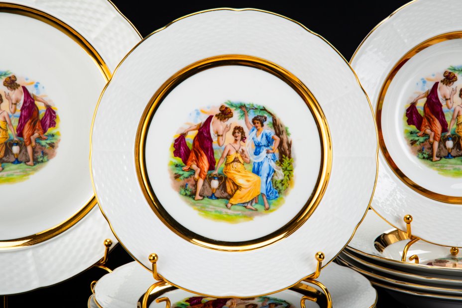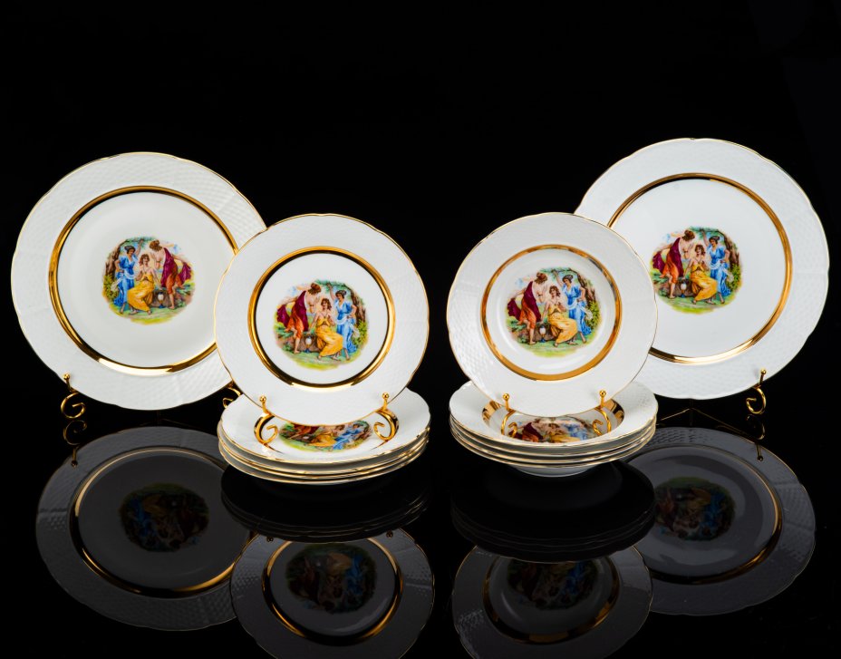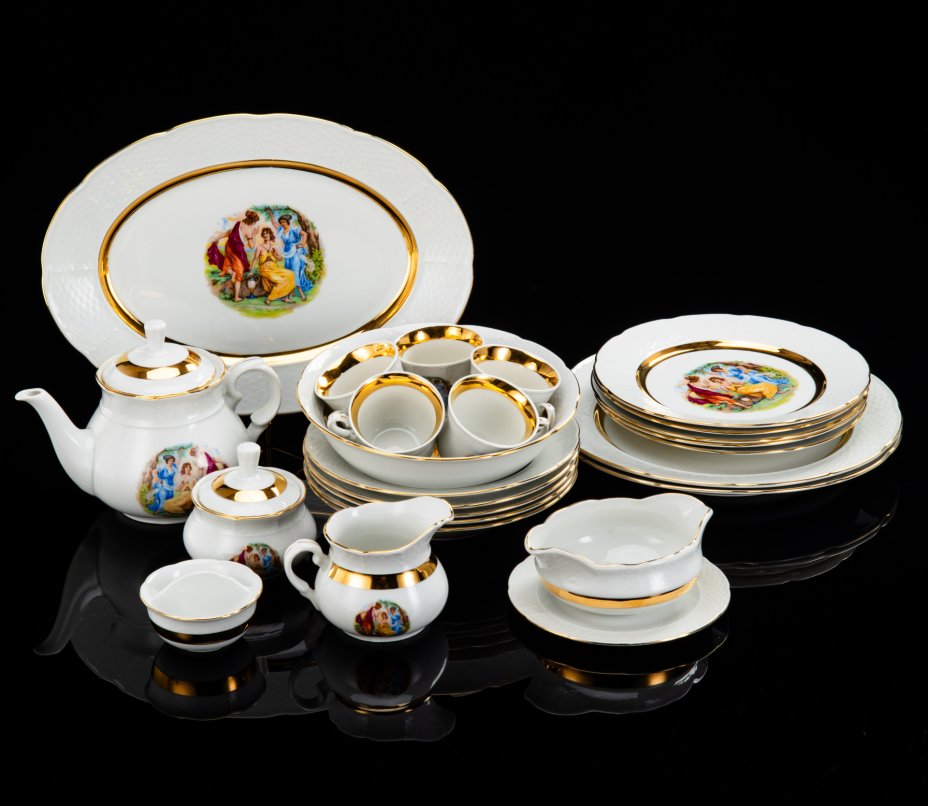 Сервиз «Северный» на 6 персон (15 предметов), форма «Москва», автор формы С.Е. Яковлева, автор рисунка Н.М. Павлова, фарфор, крытье, деколь, Ленинградский фарфоровый завод (ЛФЗ), СССР, 1970-1986 гг.