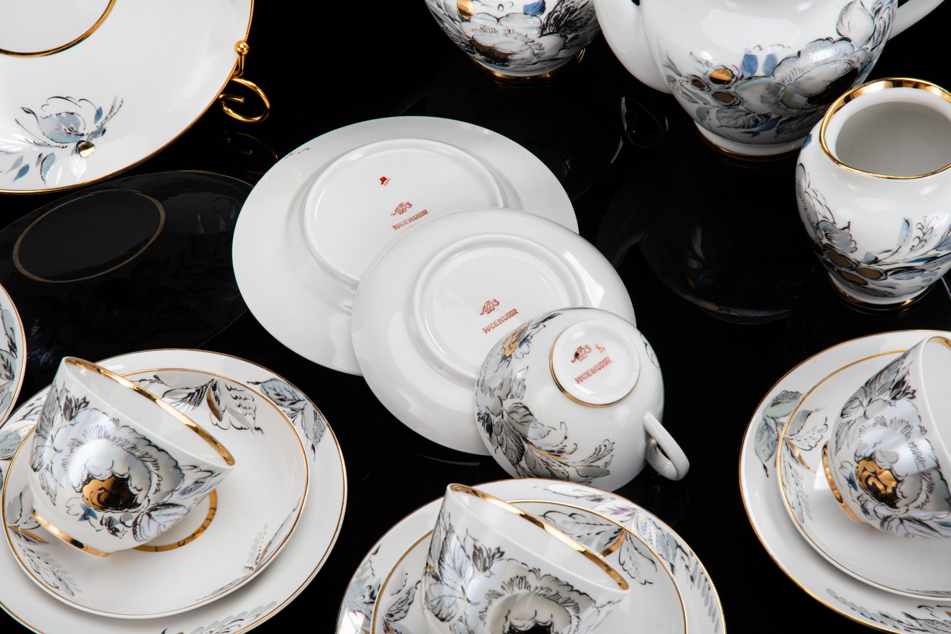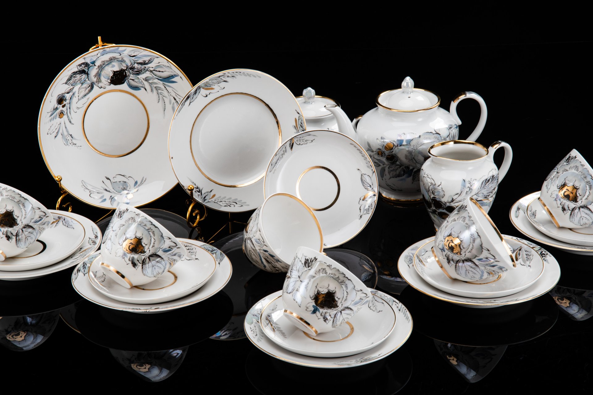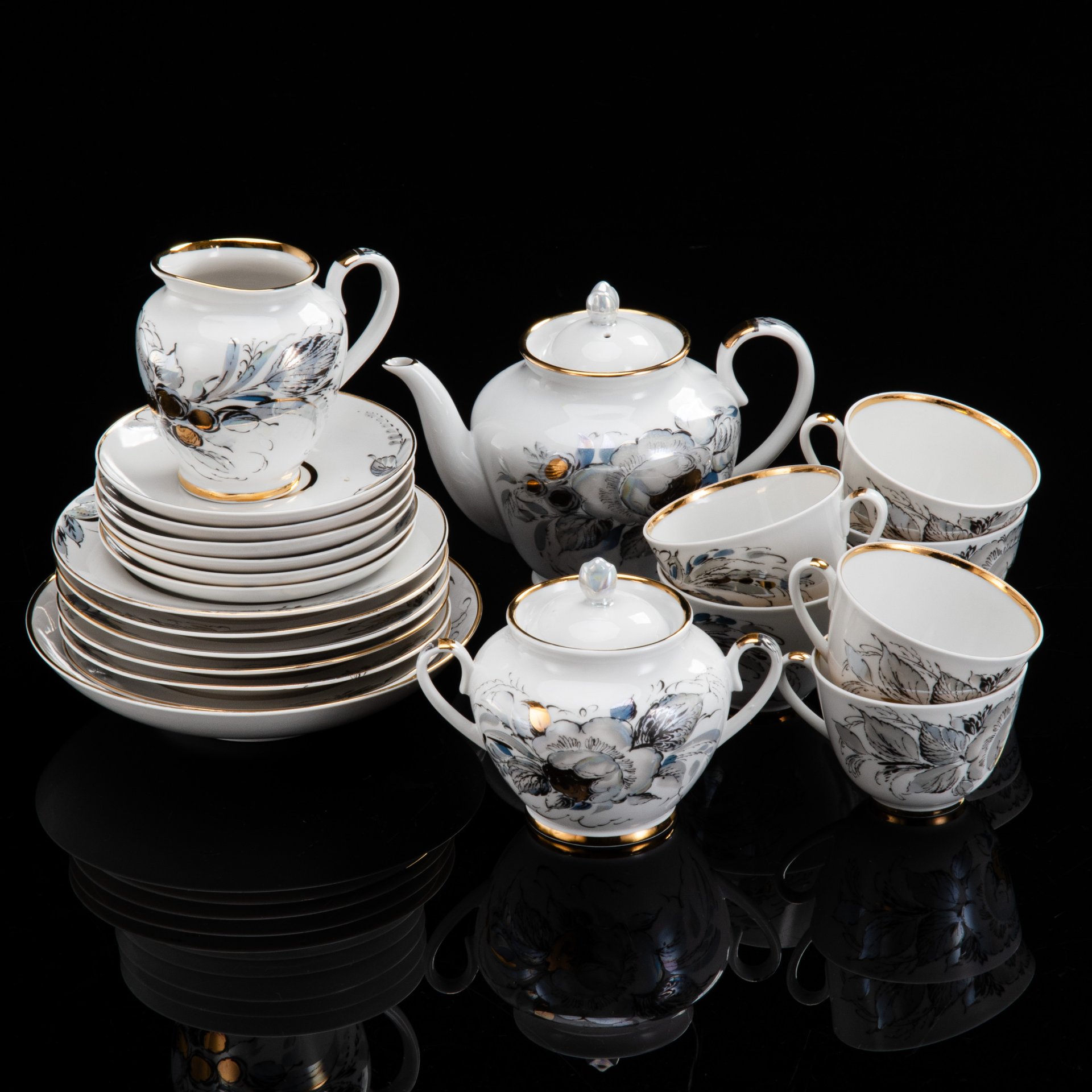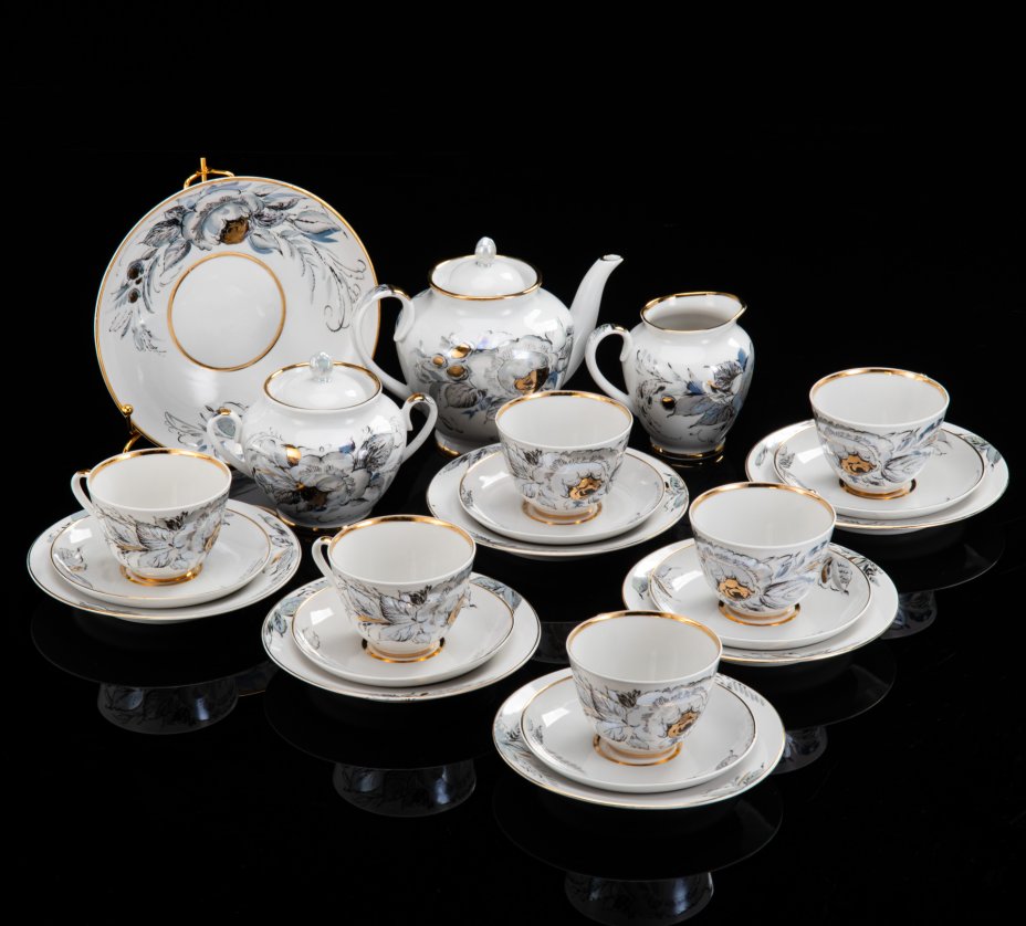 Сервиз чайный с лаконичным дизайном на 6 персон (23 предмета), фарфор, серебрение, Leander (Леандер), Чехия, 2003-2006 гг.