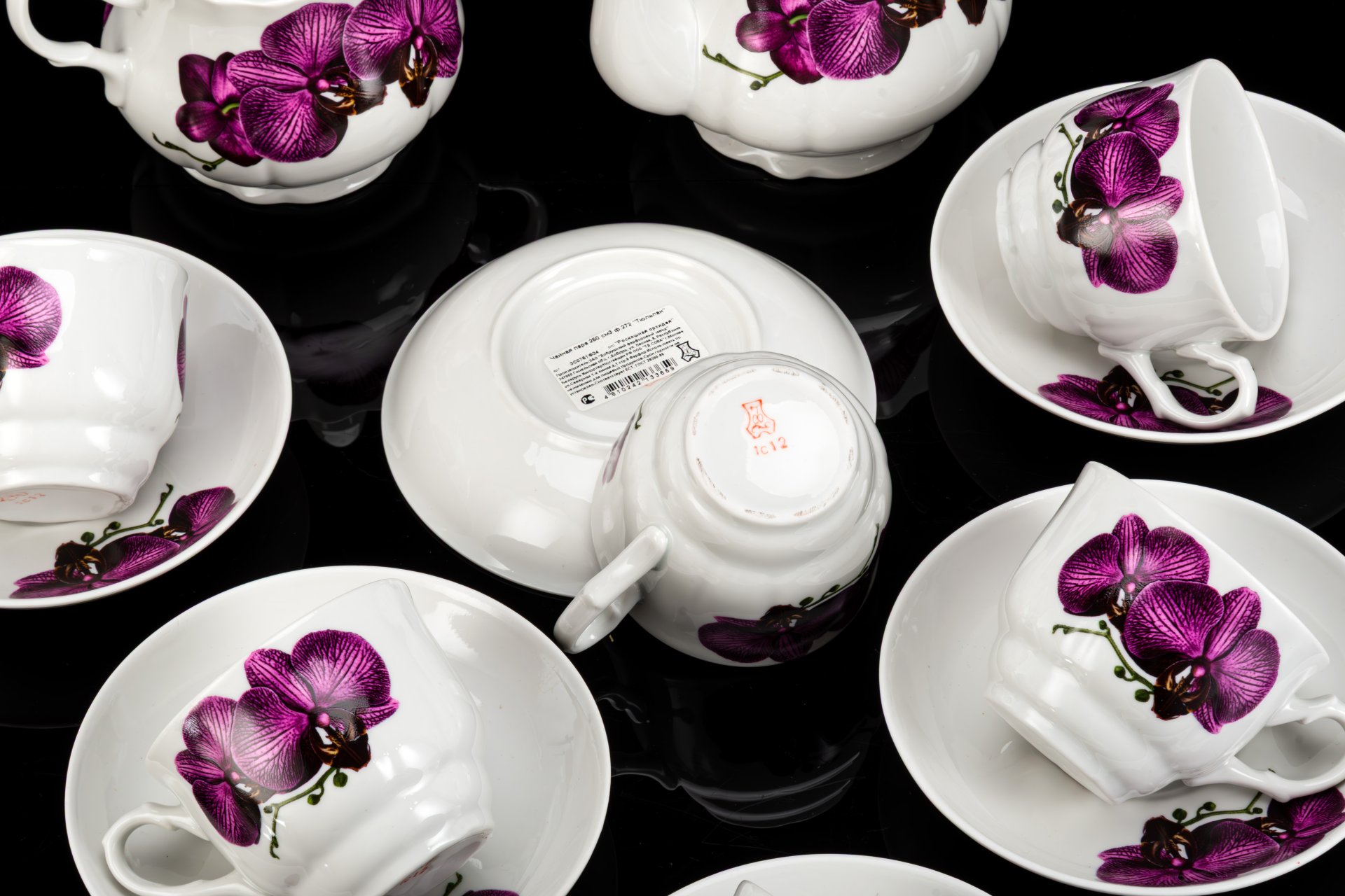 Набор из 6 чайных пар, фарфор, крытье, золочение, Тернопольский фарфоровый завод, СССР, 1975-1991 гг.