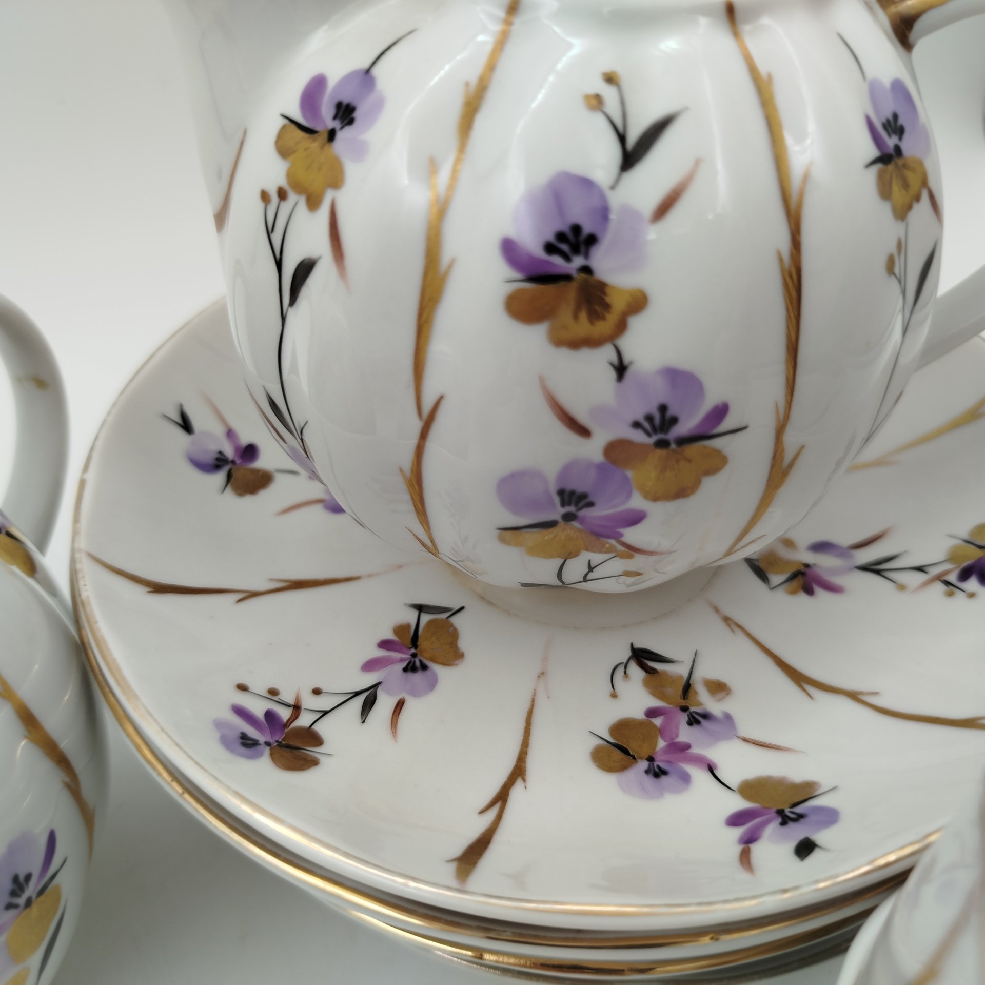 купить Сервиз чайный "Фиалки" на 5 персон (12 предметов) в подборе, форма "Тюльпан", фарфор, роспись, золочение, Ленинградский фарфоровый завод (ЛФЗ), СССР, 1970-1992 гг.
