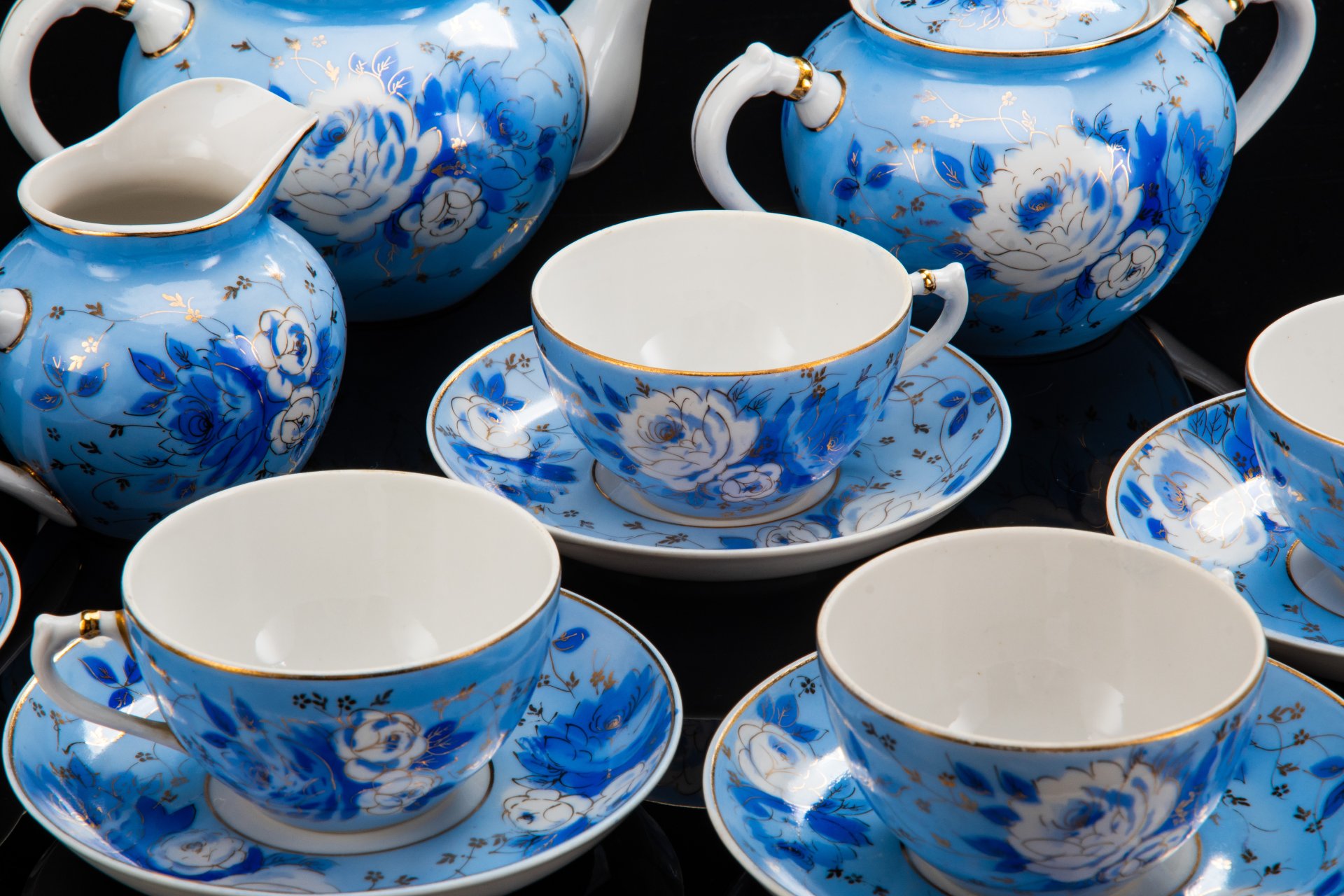 Чайный набор (чайник, молочник), украшенный флористическими узорами, фарфор, крытье, люстр, золочение, Западная Европа, 1920-1940 гг.
