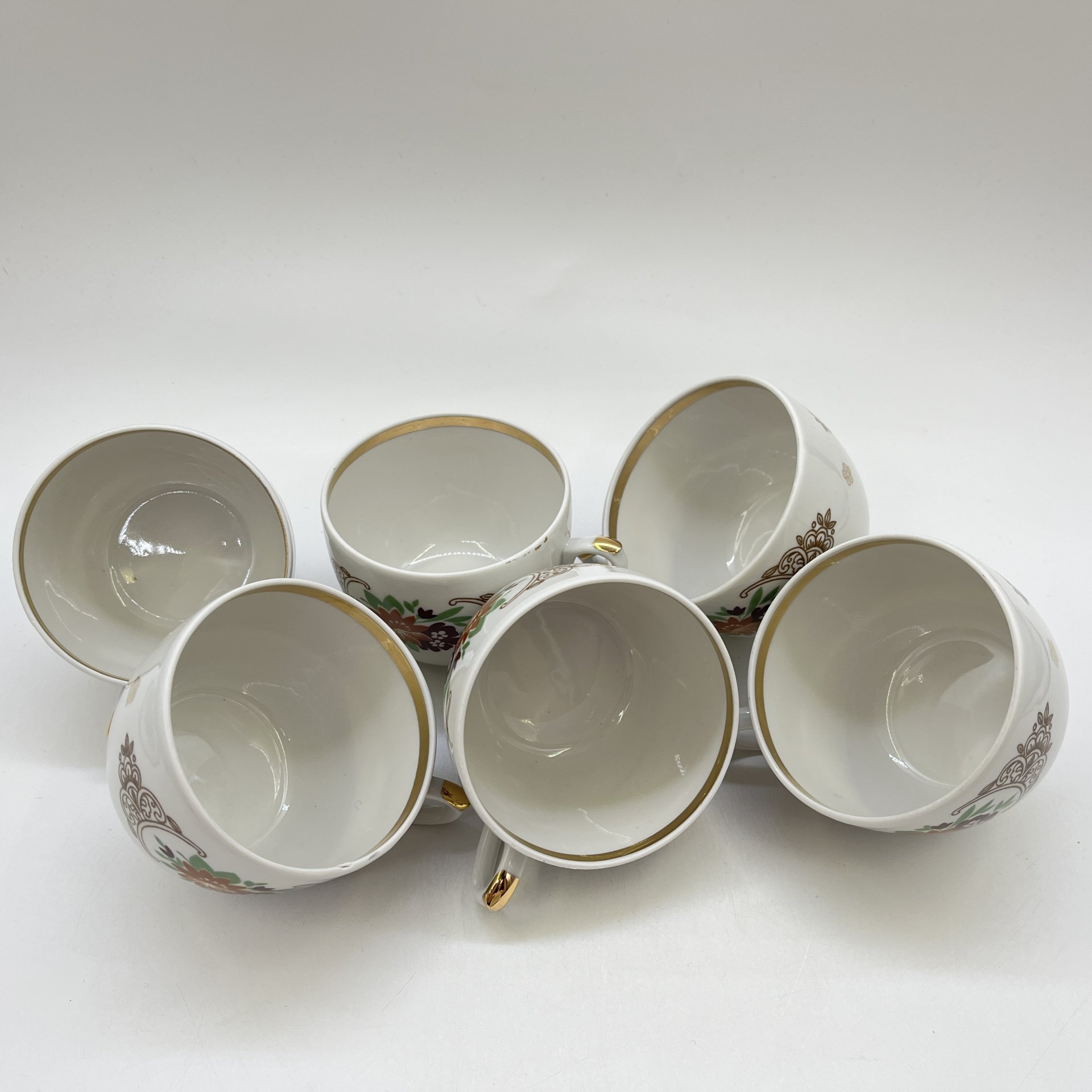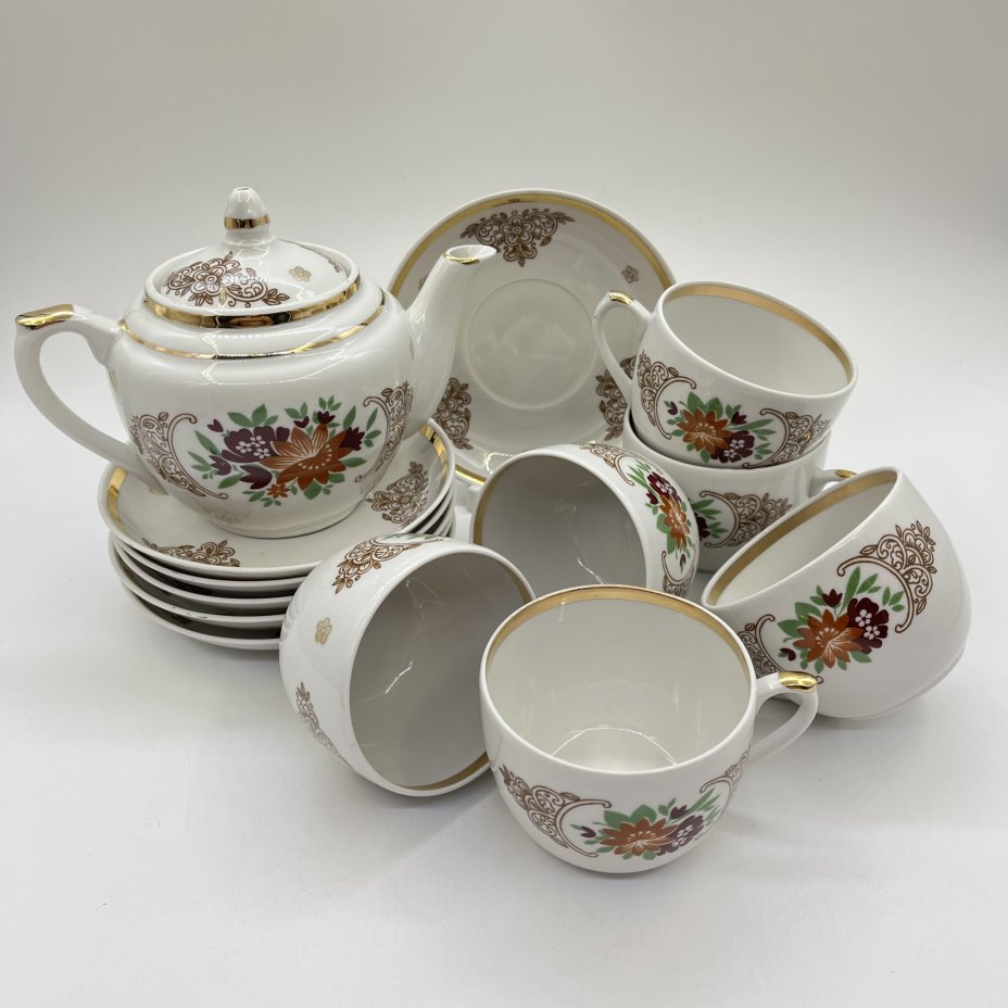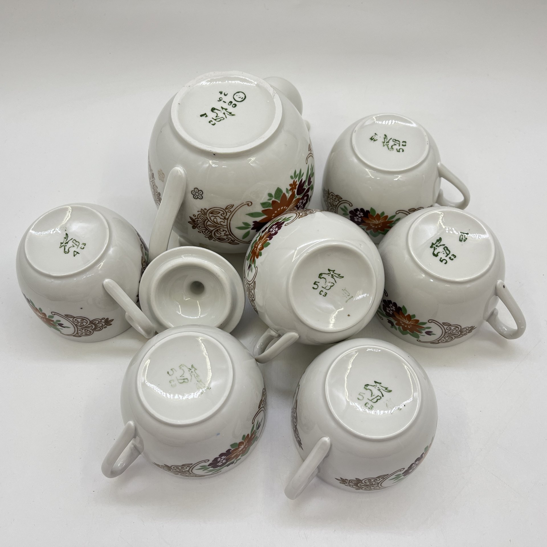 Сервиз чайный со стилизованным цветочным декором на 5 персон (19 предметов), завод "Lubiana", фарфор, деколь, золочение, Польша, 1966-1994 гг.