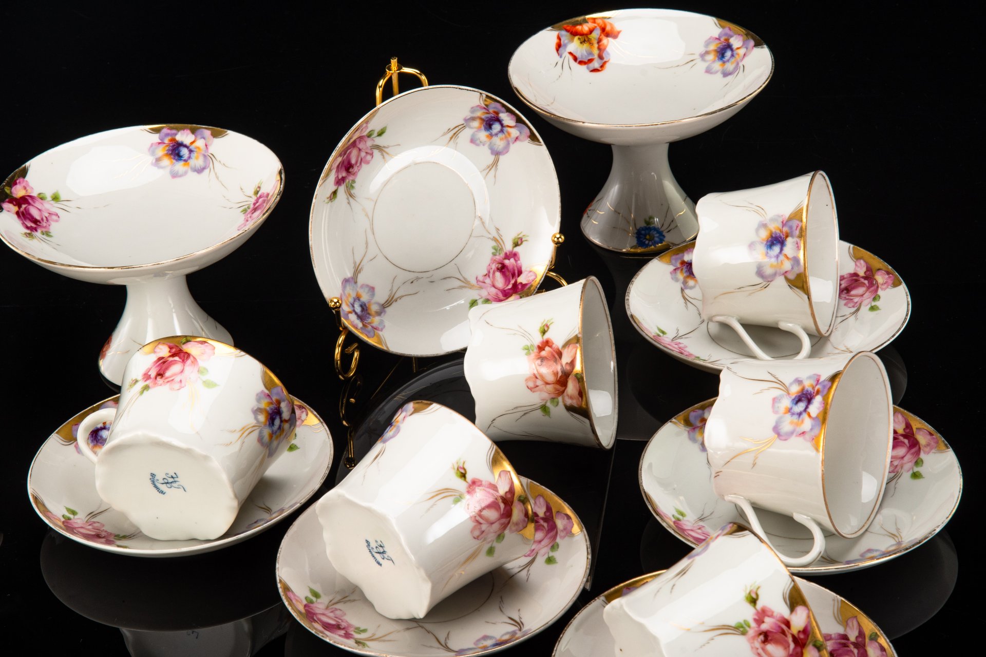 Набор из двух чайных пар, фарфор, золочение, Eschenbach, Германия, 1930-1950 гг.