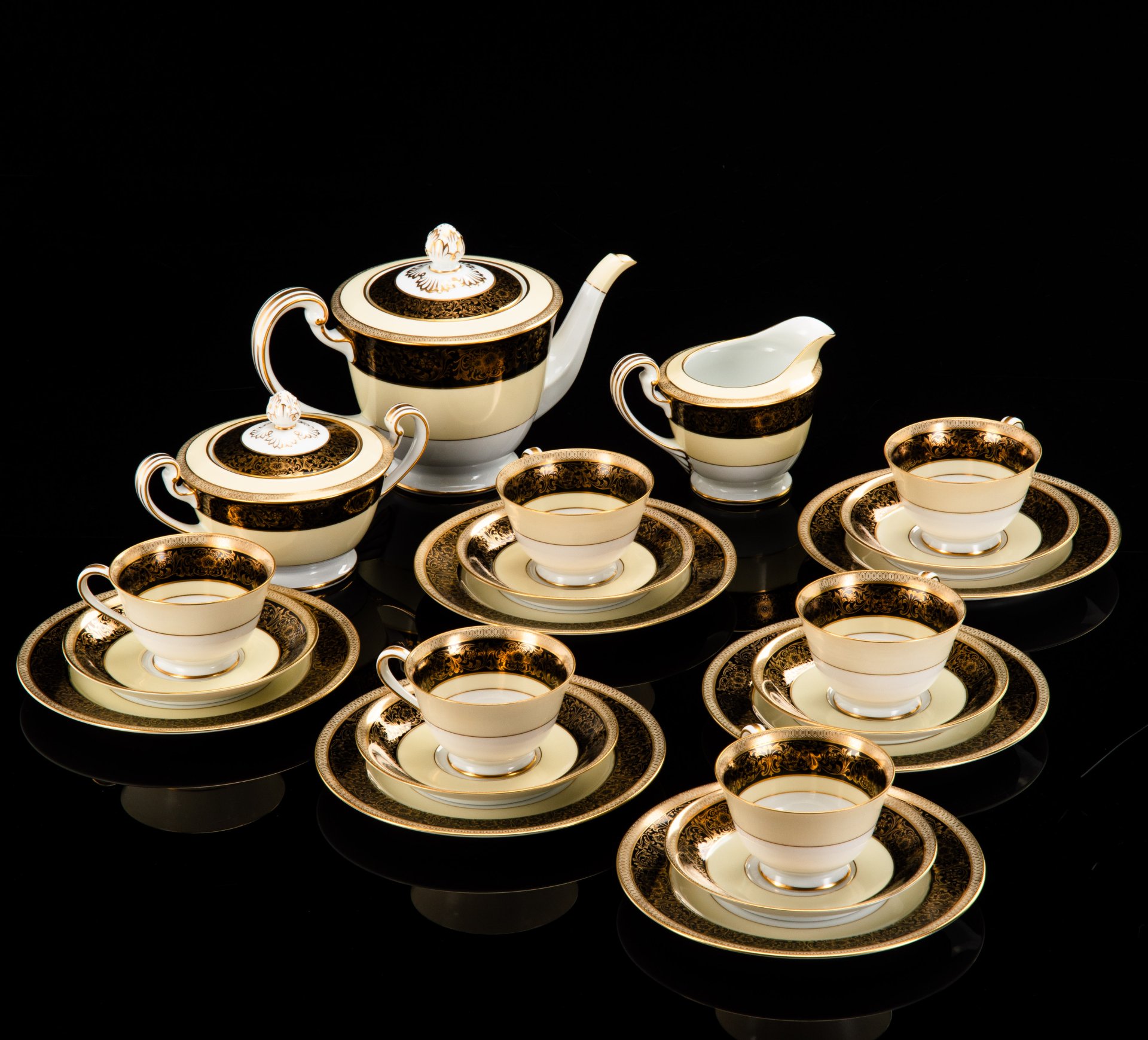 Сервиз чайный с лаконичным дизайном на 6 персон (23 предмета), фарфор, серебрение, Leander (Леандер), Чехия, 2003-2006 гг.