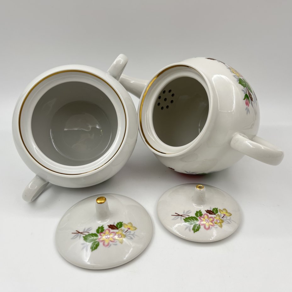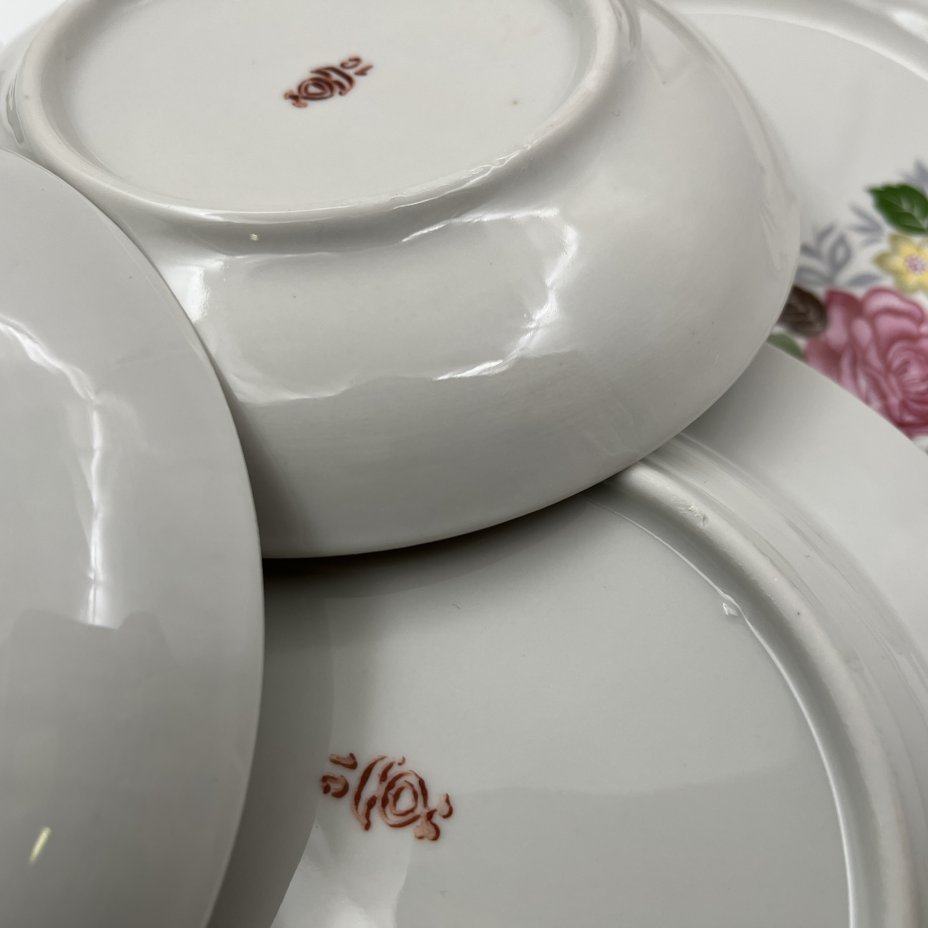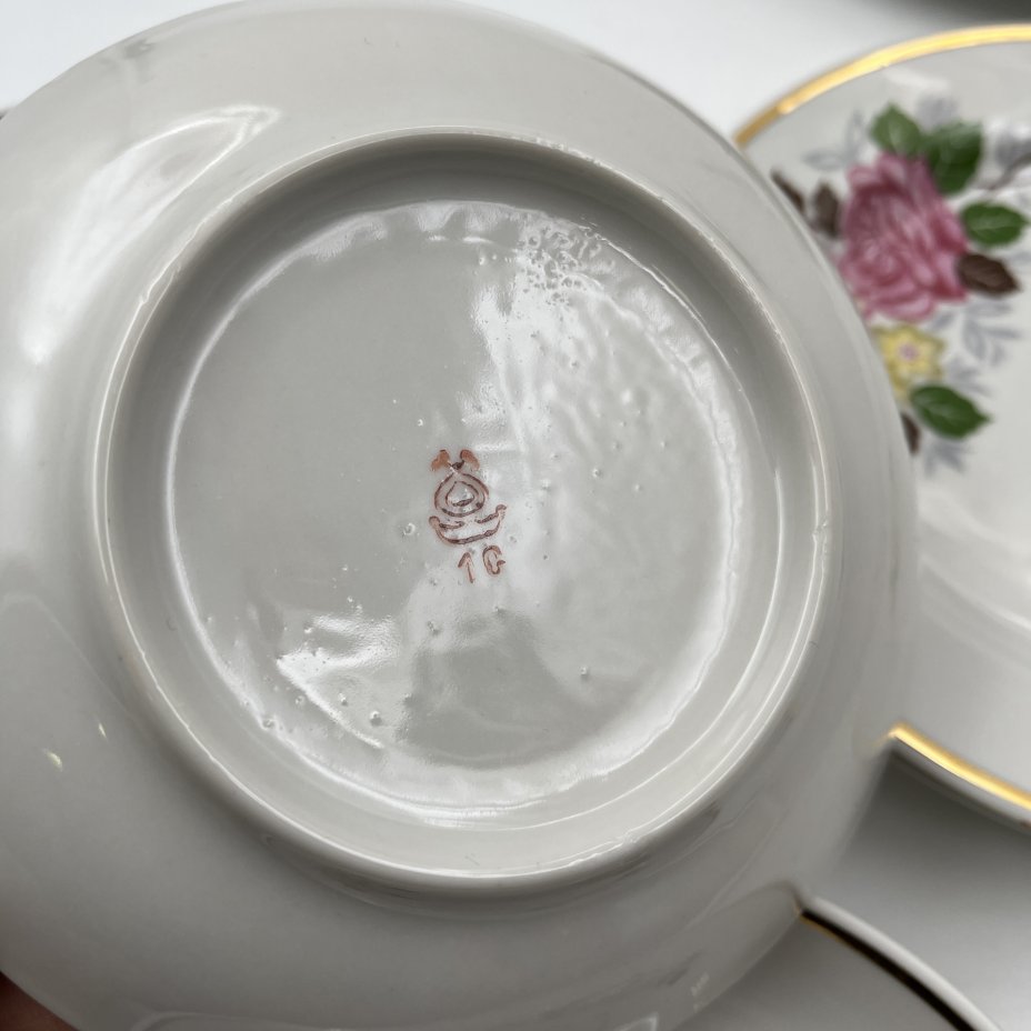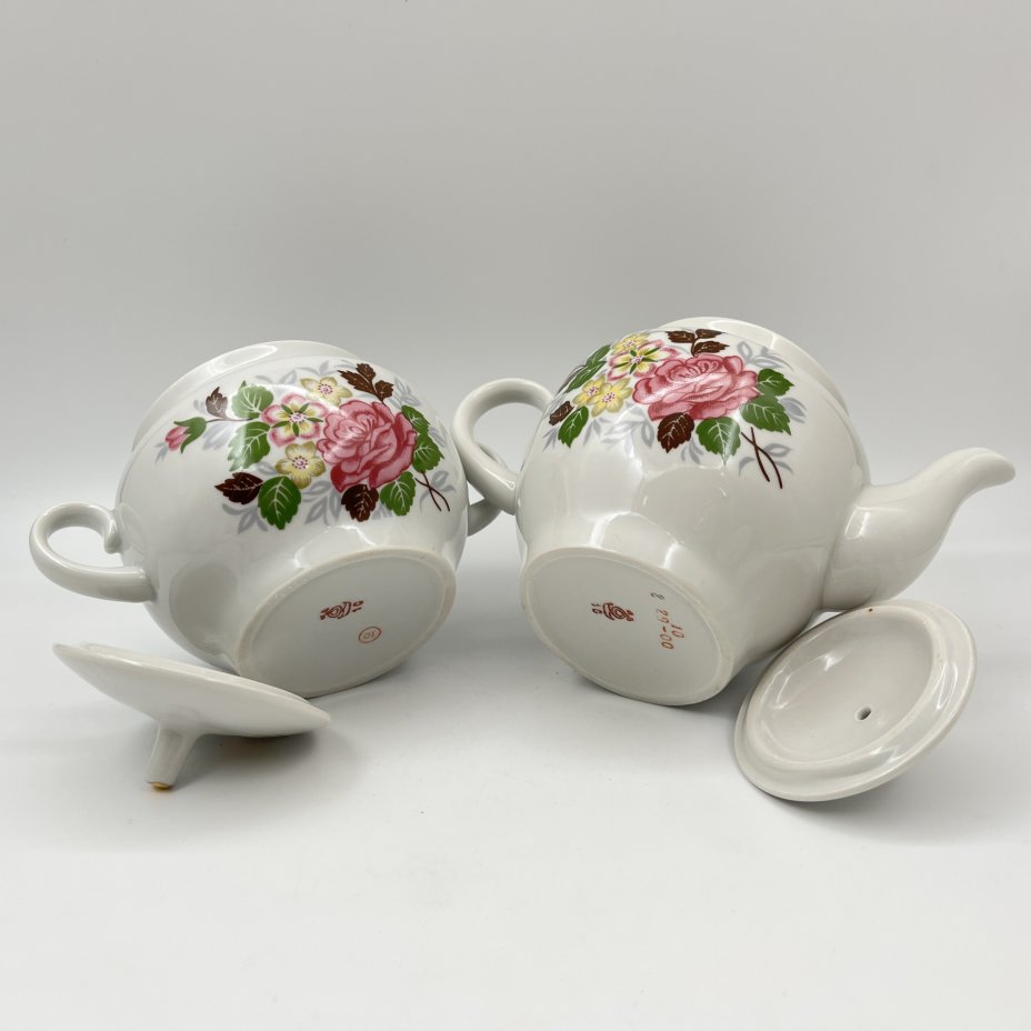 Сервиз чайный на 6 персон, украшенный декором в виде роз (21 предмет), фарфор, деколь, люстр, Дмитровский фарфоровый завод (ДФЗ Вербилки), СССР, 1980-1991 гг.
