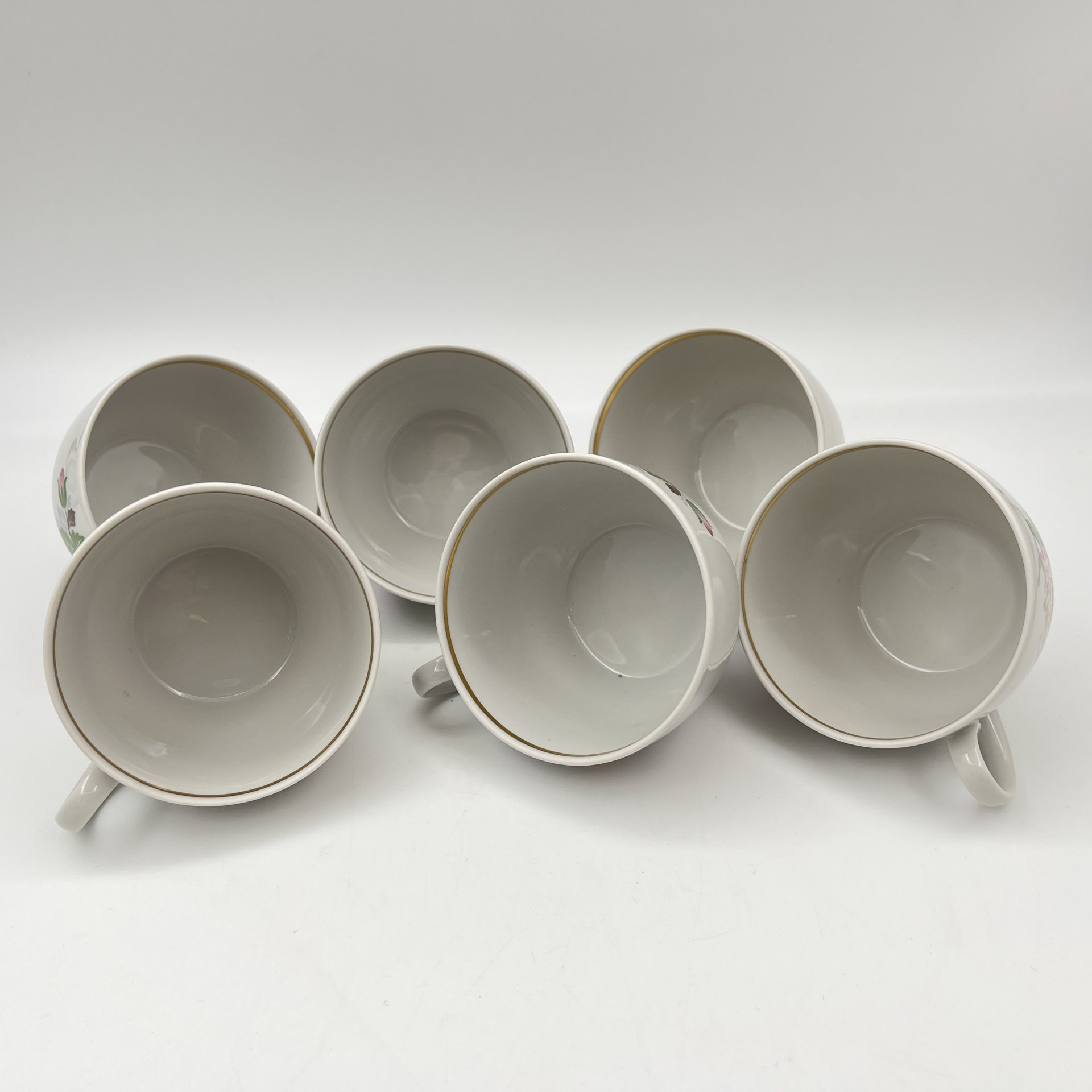 Набор из шести чайных пар "Русское кружево", автор формы "Волна" Криммер Э.М., автор рисунка Беспалова-Михалева Т.Н., фарфор, деколь, золочение, Ленинградский фарфоровый завод (ЛФЗ), СССР, 1970-1992 гг.