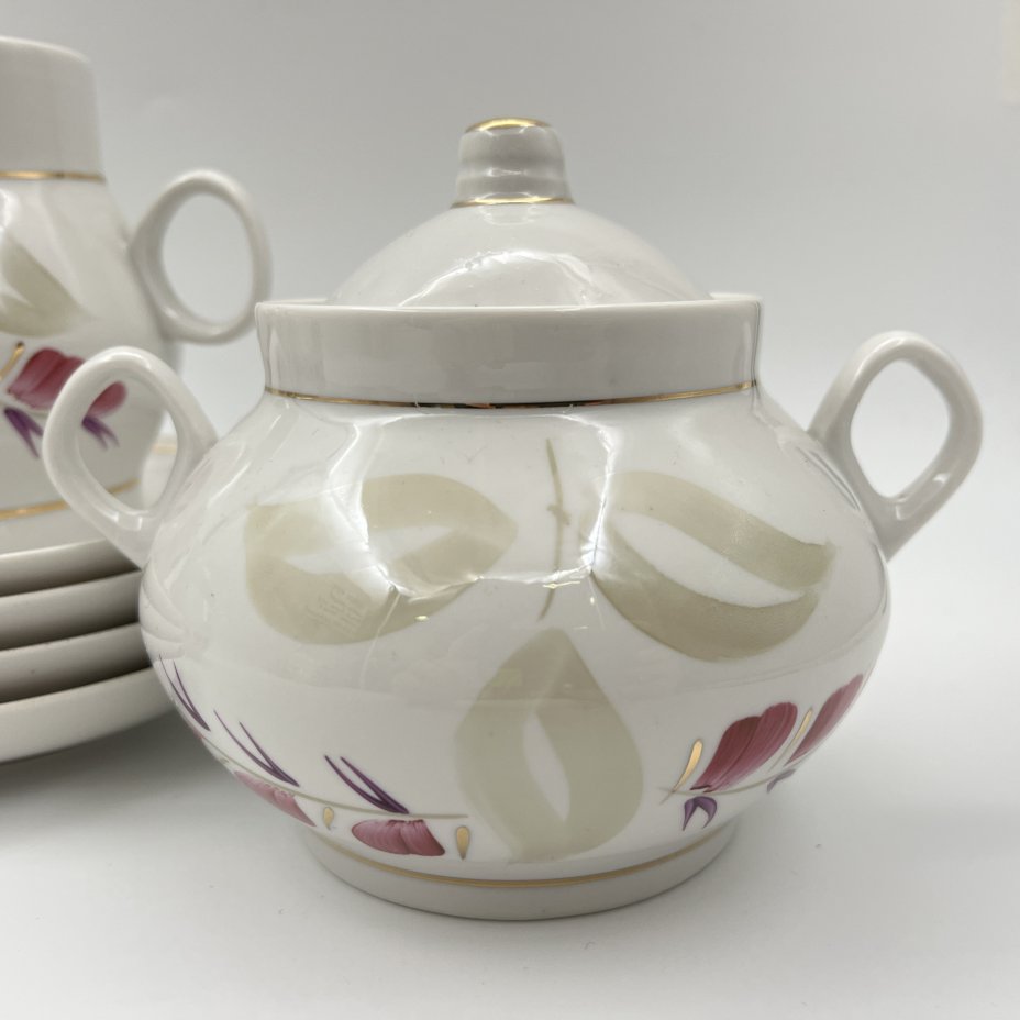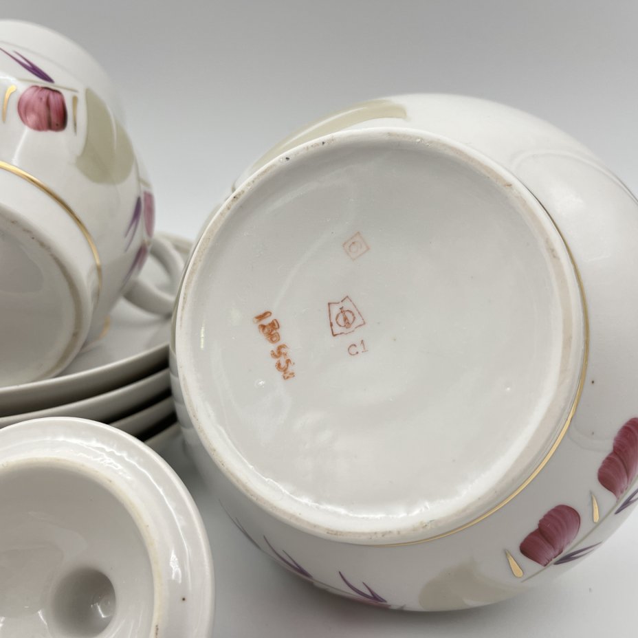 Сервиз чайный с цветочным декором на 5 персон (24 предмета), фарфор, крытье, люстр, деколь, золочение, Spezial Eisenberg Porzellan (SEP), ГДР, 1973-1976 гг.