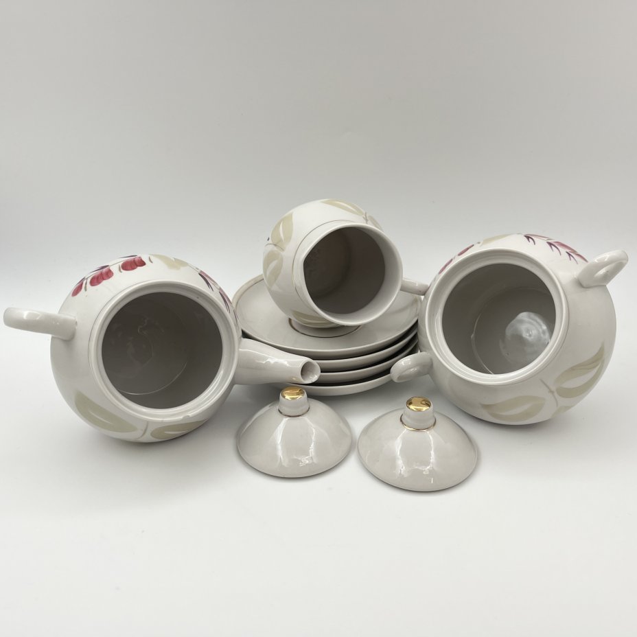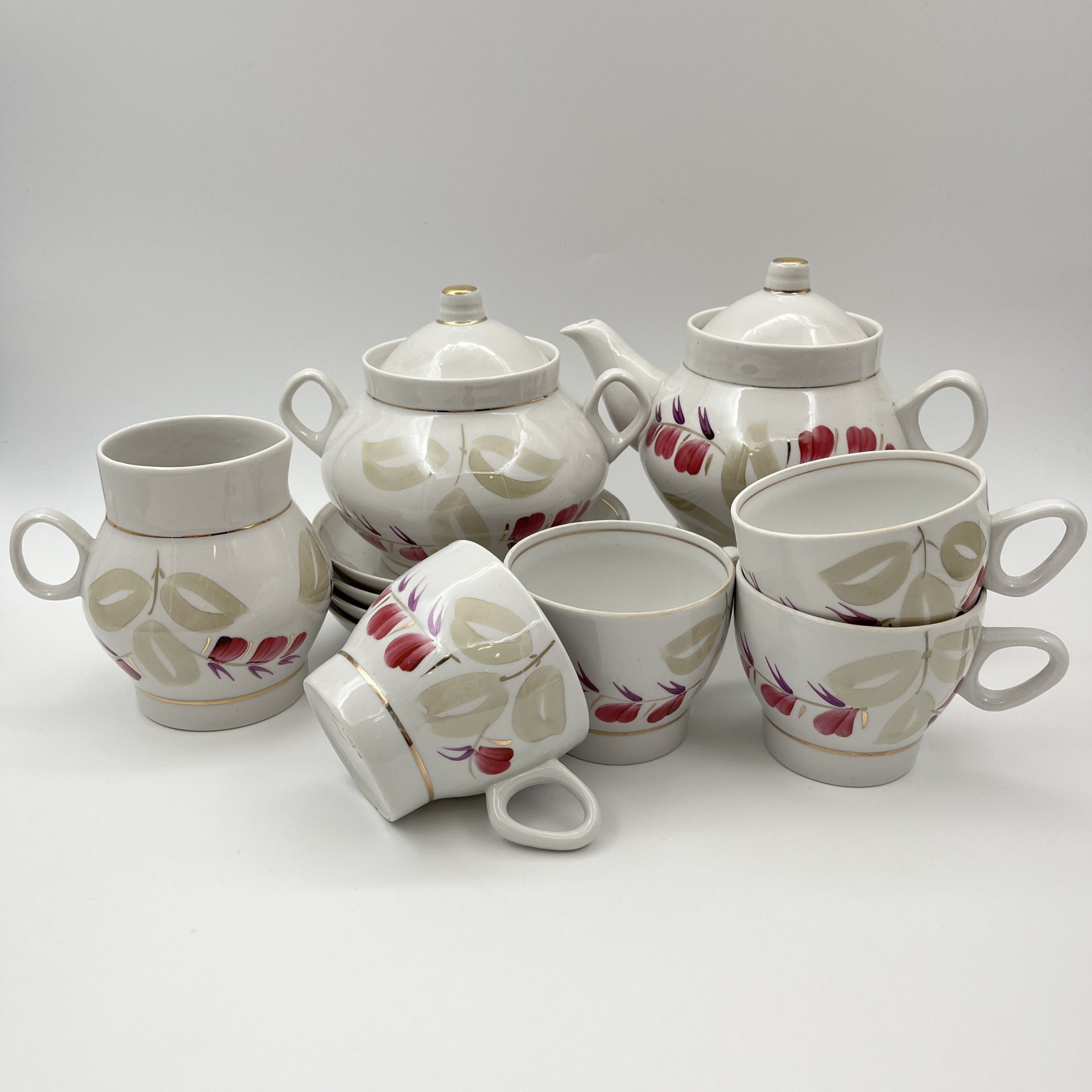 Сервиз чайный "Вишня" на 6 персон (14 предметов), фарфор, роспись, золочение, Краснодарский фарфорово-фаянсовый завод «Чайка», СССР, 1960-1992 гг.