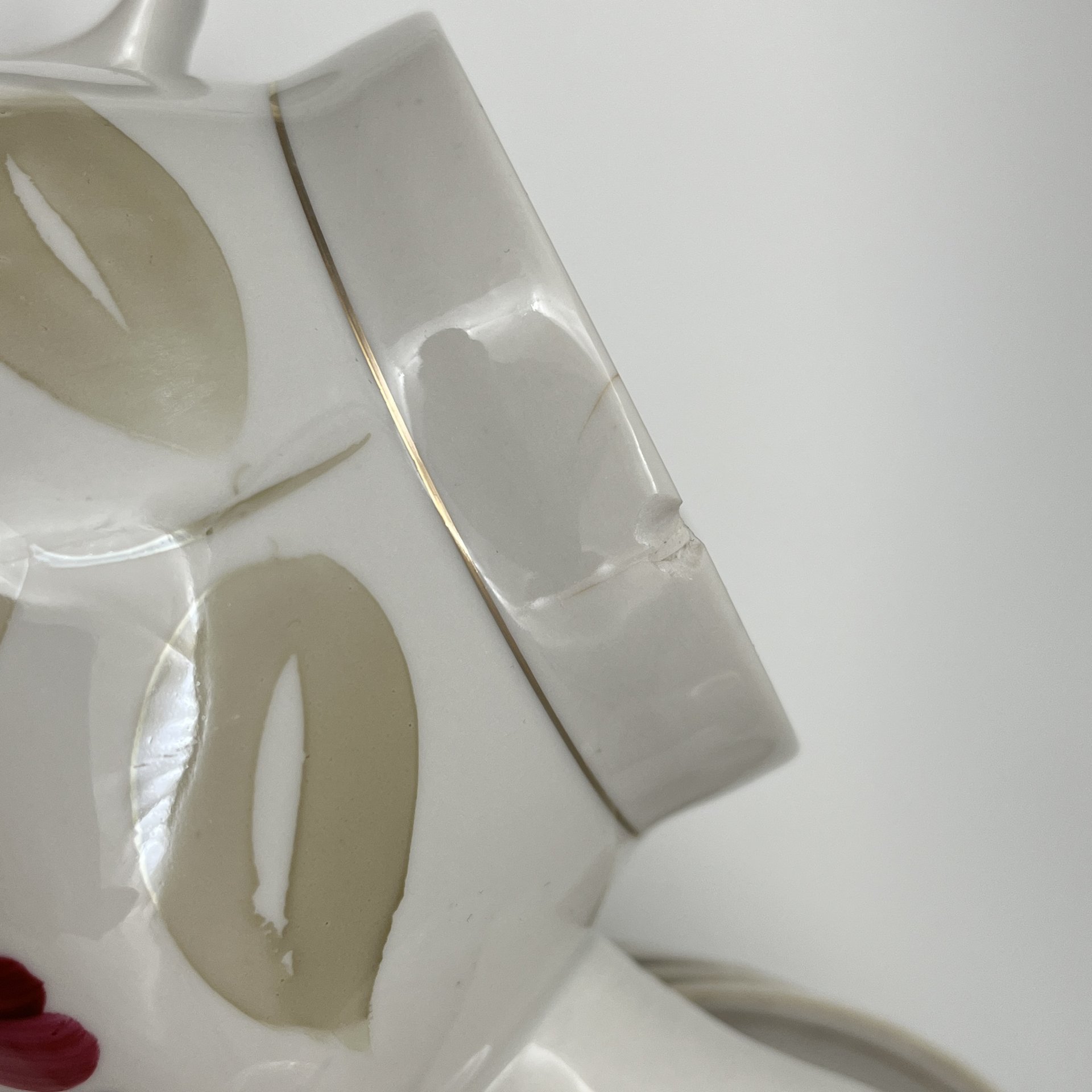 Чайник с цветочным декором, форма "Ампир", фарфор, роспись, золочение, Дмитровский фарфоровый завод (ДФЗ Вербилки), СССР, 1965-1991 гг.