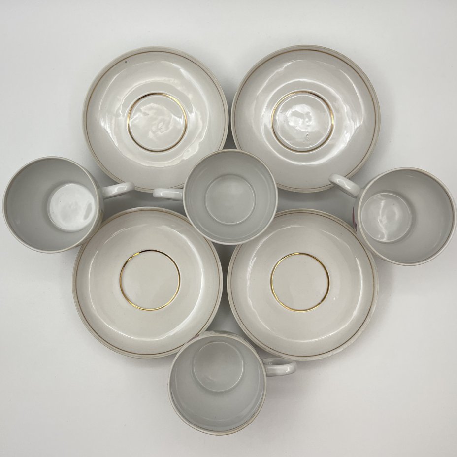 Сервиз чайный с декором в виде роз, на 6 персон (14 предметов), фарфор, деколь, золочение, Фарфоровый завод «Пролетарий» (Бронница, Мста), СССР, 1967-1975 гг.
