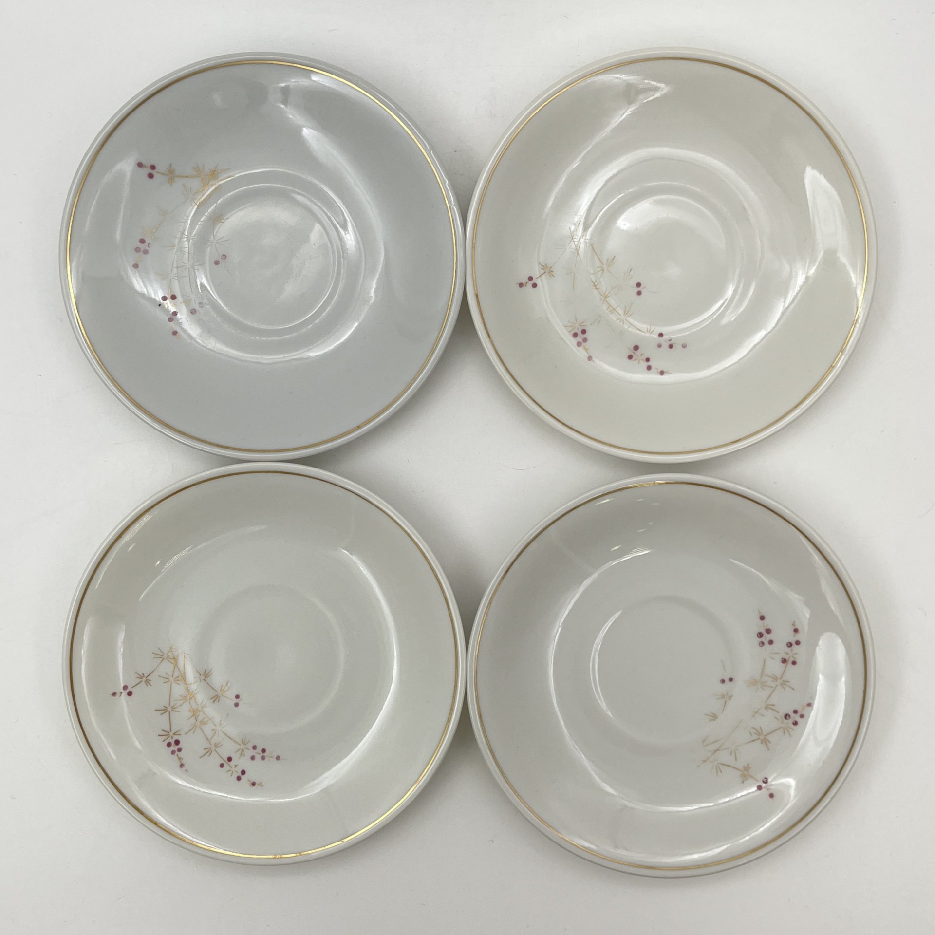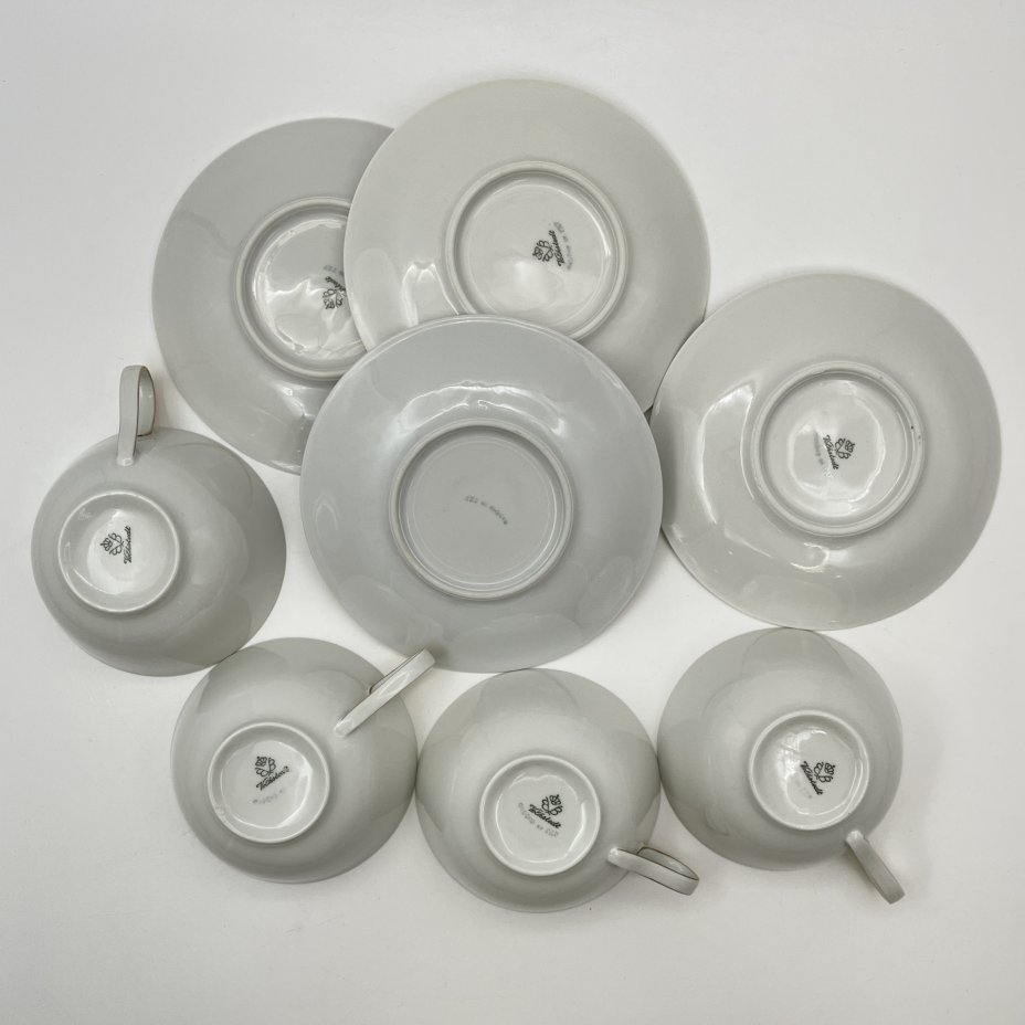Набор чайных трио с цветочным декором на 4 персоны, фарфор, роспись, золочение, Завод «Красный фарфорист» (Чудово, Грузинская фарфорово-фаянсовая фабрика), 1962-1971 гг.