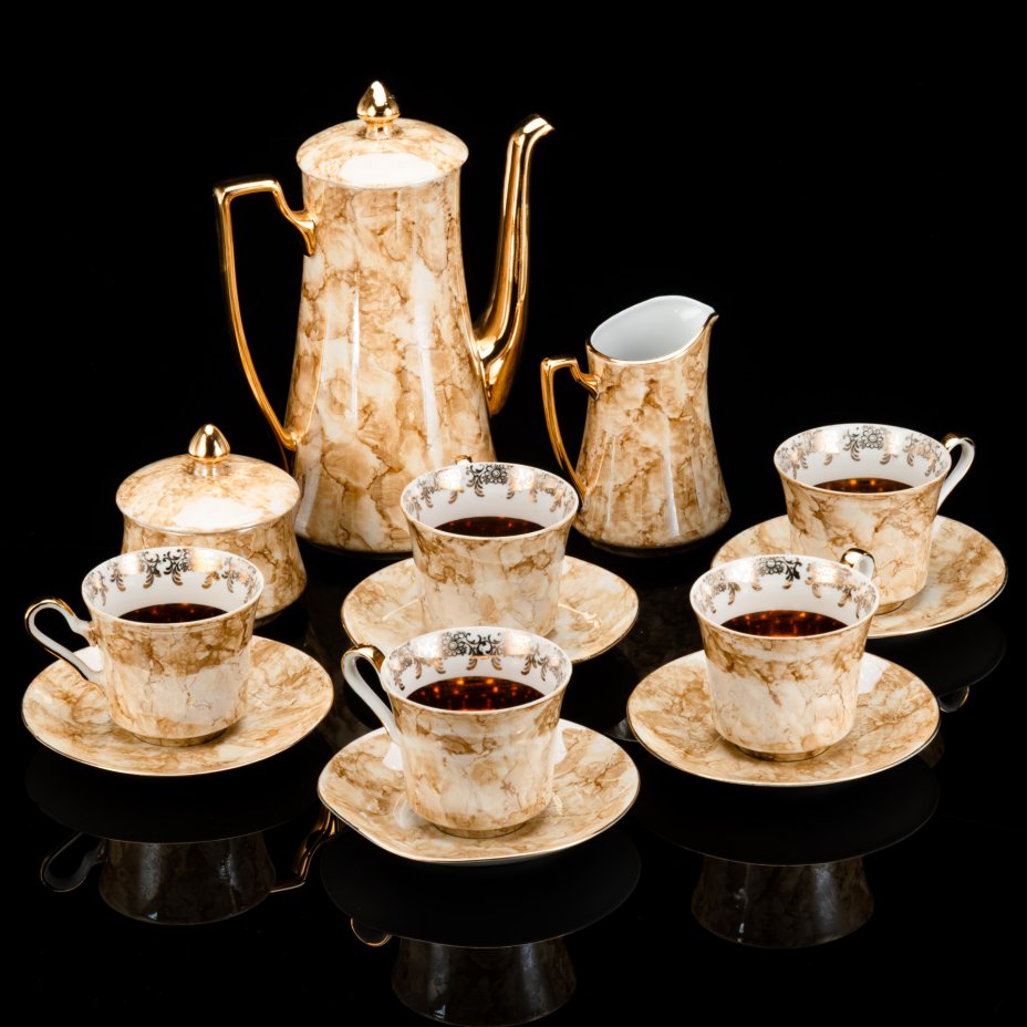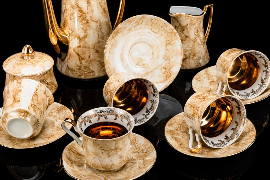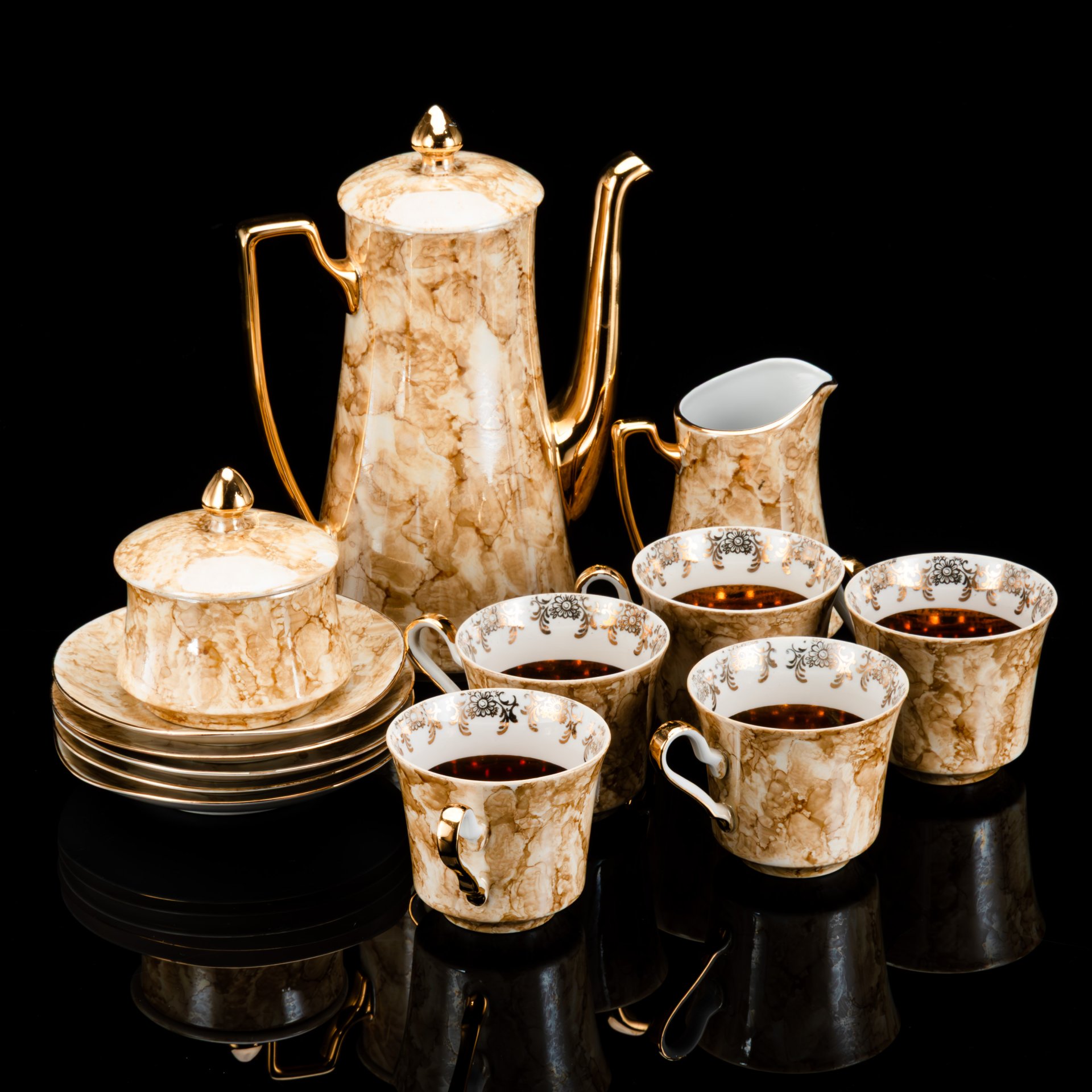 Набор из 6 чайных пар, фарфор, крытье, золочение, Тернопольский фарфоровый завод, СССР, 1975-1991 гг.