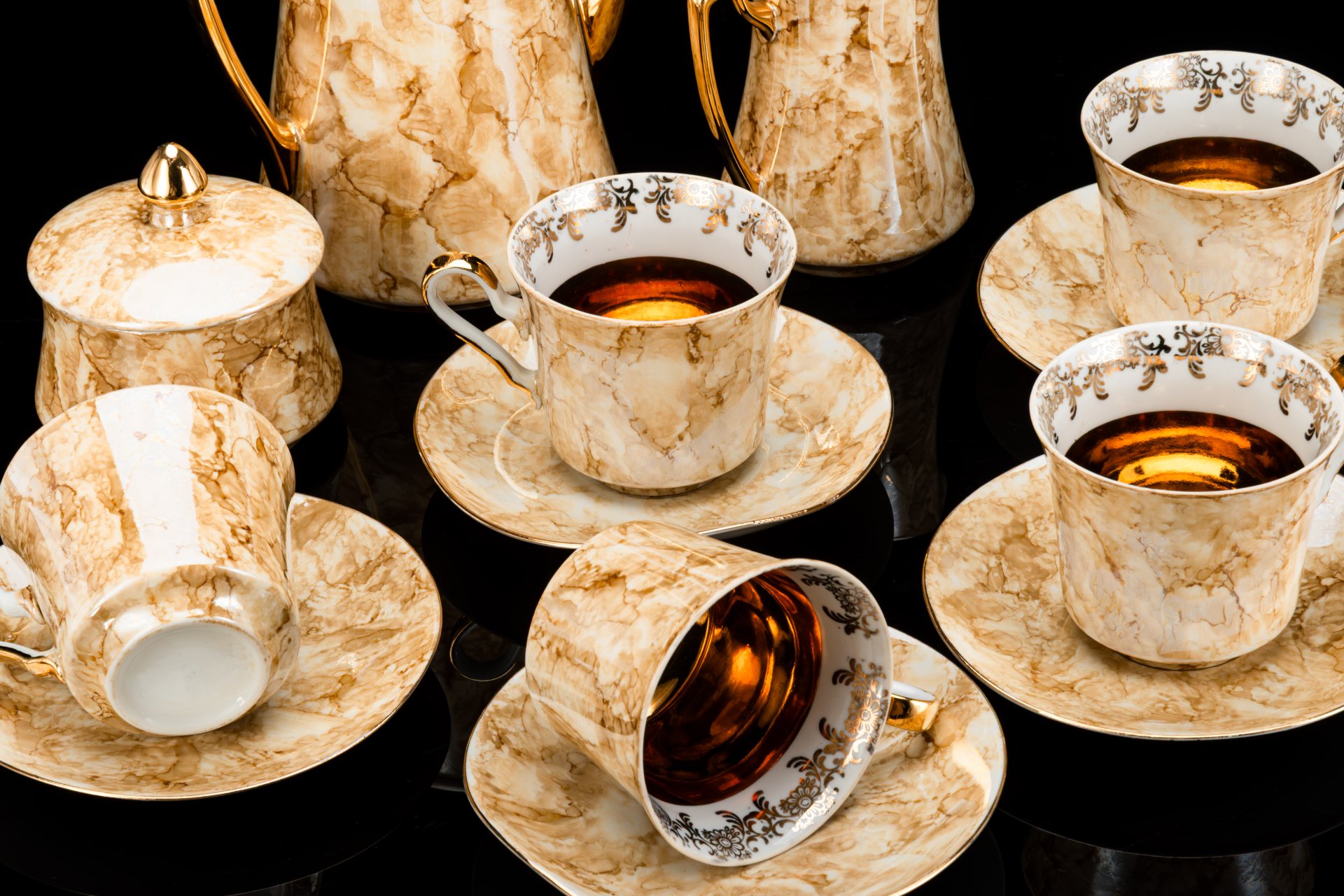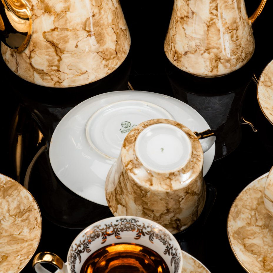 Сервиз чайный с цветочным и геометрическим декором, фарфор, люстр, золочение, Европа, 1950-1970 гг.