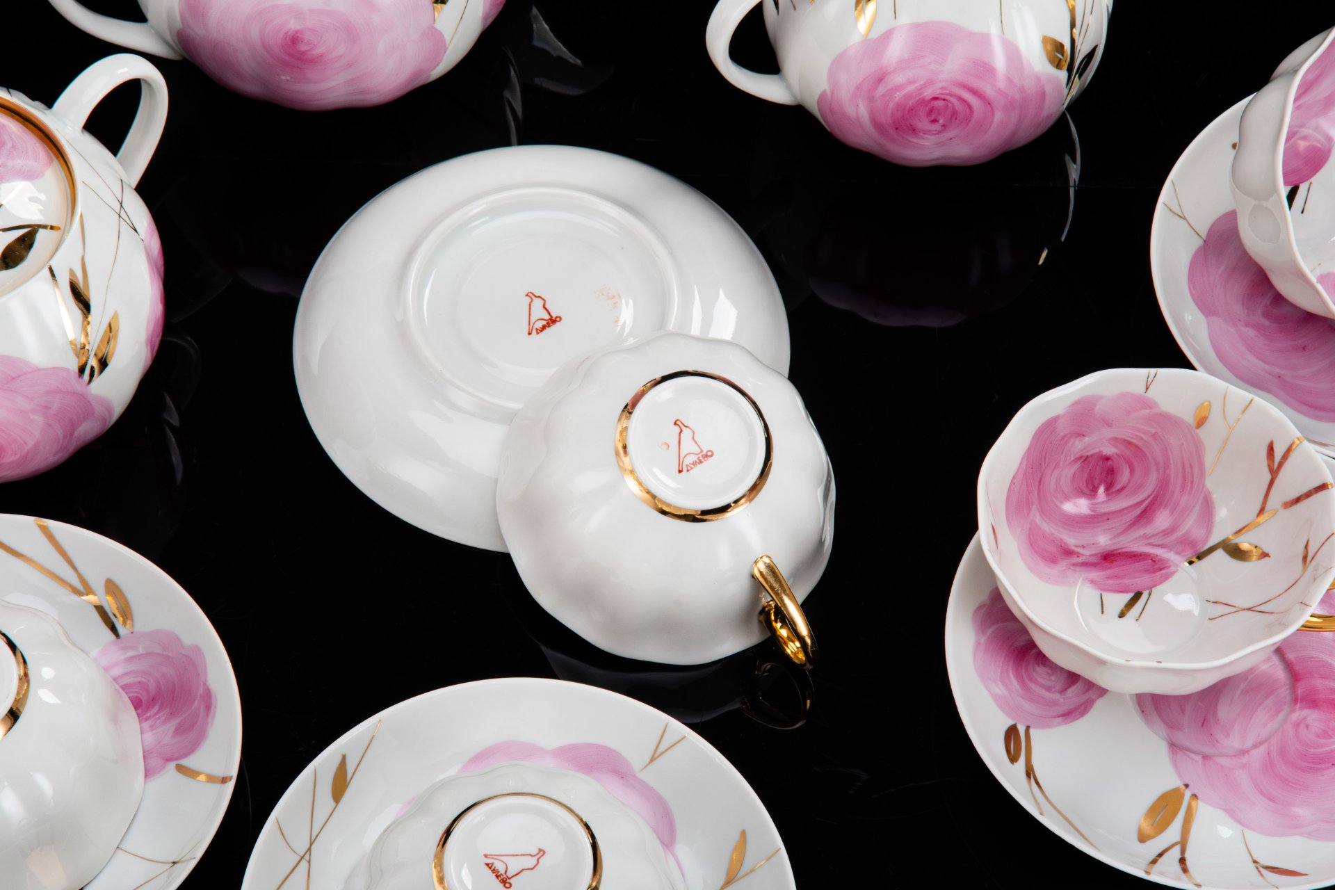 Сервиз чайный со стилизованным цветочным декором на 5 персон (19 предметов), завод "Lubiana", фарфор, деколь, золочение, Польша, 1966-1994 гг.