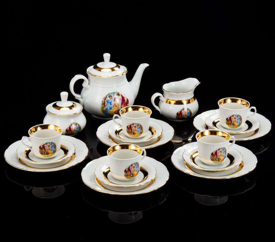 Сервиз чайный на 6 персоны (21 предмет), фарфор, деколь, золочение, Мануфактура "Moritz Zdekauer", Чехословакия, 1960-1980 гг.
