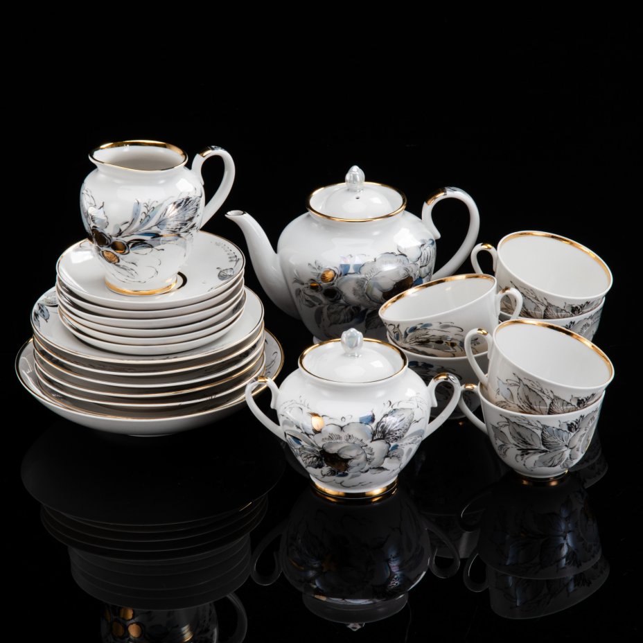 Сервиз чайный "Лебединое озеро" на 5 персон (20 предметов), фарфор, деколь, роспись, золочение, Ленинградский фарфоровый завод (ЛФЗ), СССР, 1970-1992 гг.