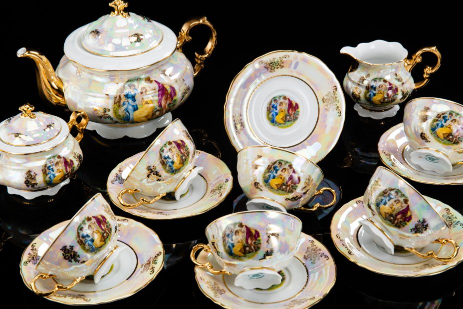 Сервиз чайный "Мадонна" на 6 персон (21 предмет), фарфор, люстр, деколь, золочение, Fortuna Eisenberg, ГДР, 1970-1980 гг.