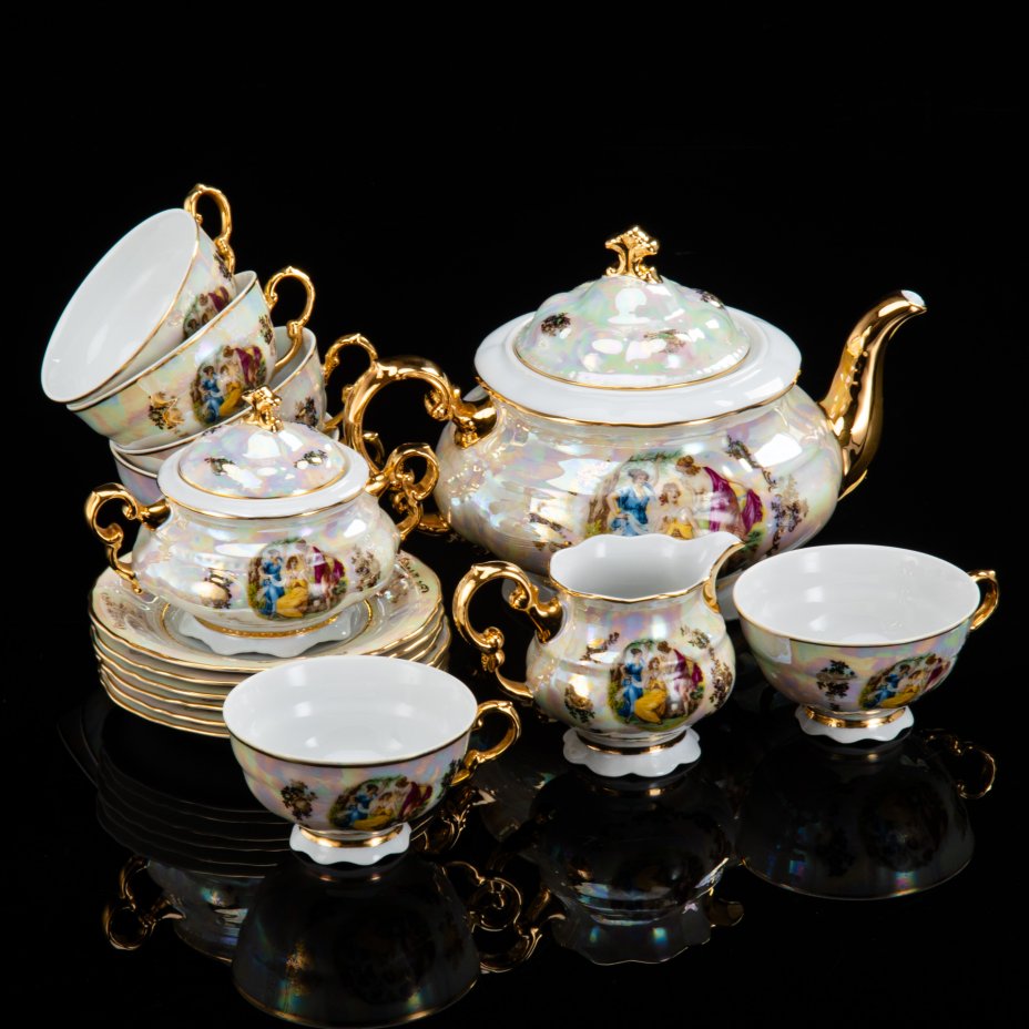 Сервиз чайный "Мадонна" на 6 персон (15 предметов), фарфор, люстр, деколь, золочение, Leander (Леандер), Чехия, 1995-2003 гг.