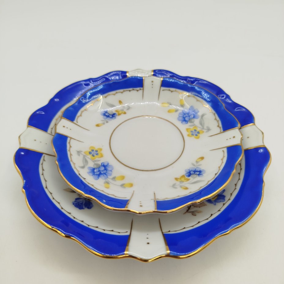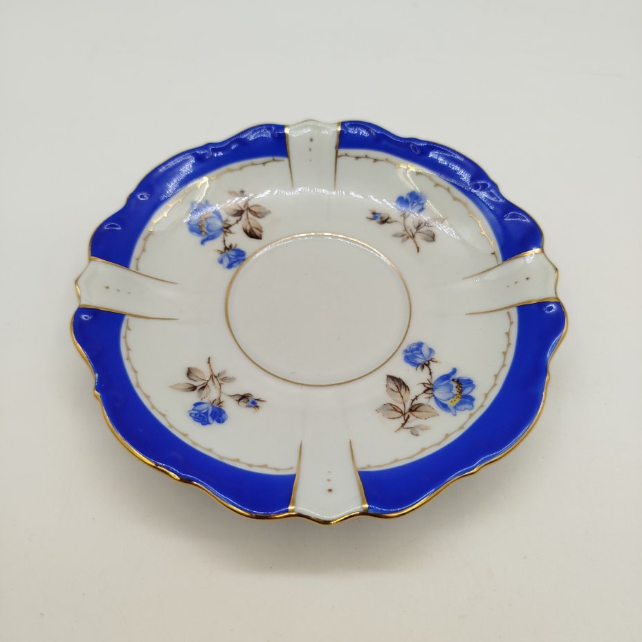 Чайное трио и десертная тарелка с монохромным растительным декором, фарфор, деколь, золочение, Kahla, ГДР, 1960-1980 гг.