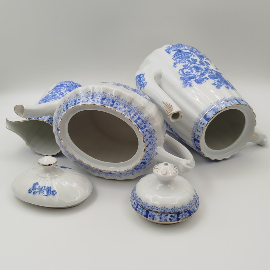 Сервиз чайный с нежным цветочным декором в сиреневой гамме, на 4 персоны (19 предметов), фарфор, деколь, золочение, Lichte Porzellan (Лихте), ГДР, 1976-1990 гг.