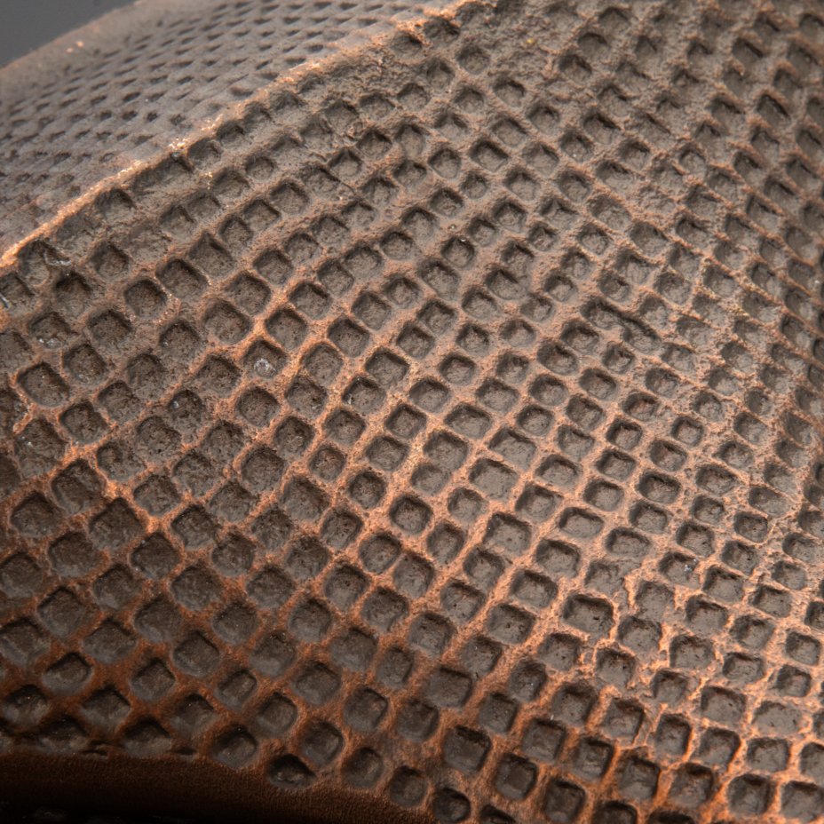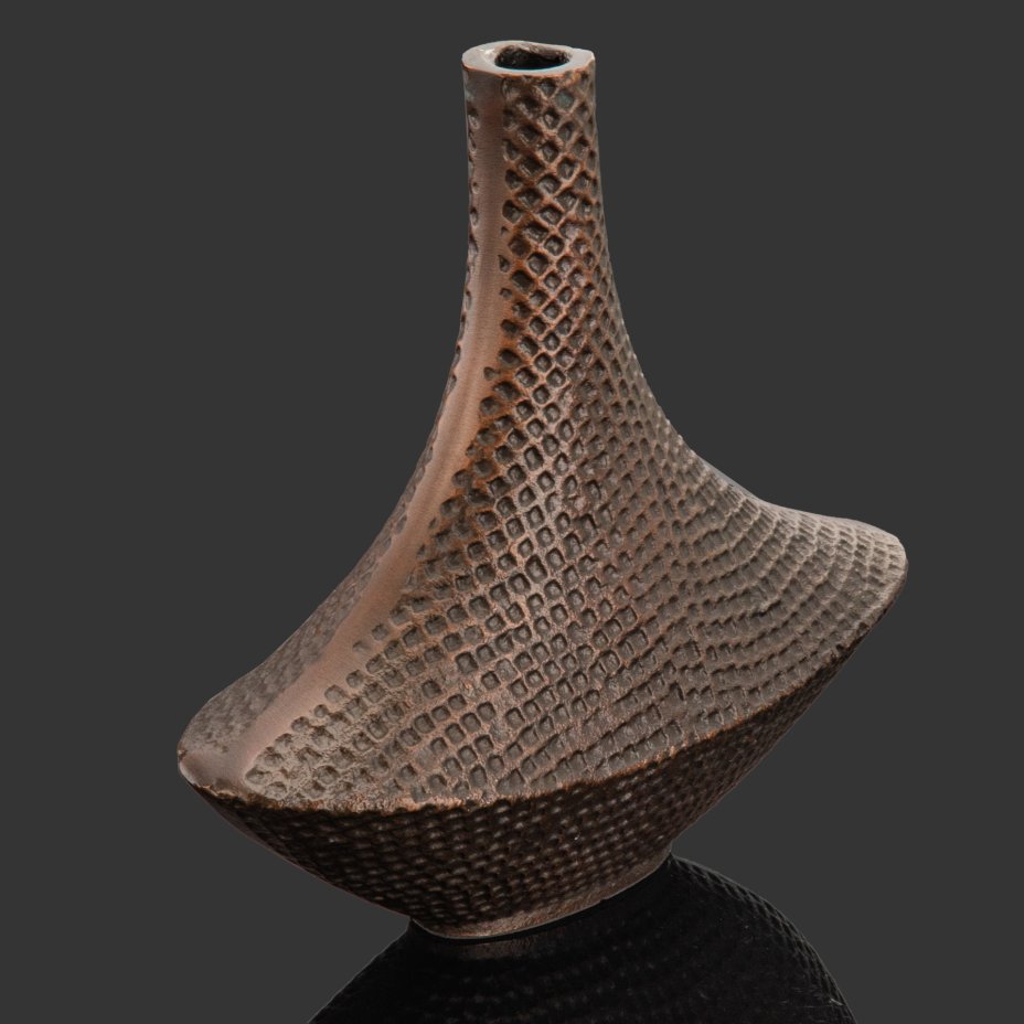 Ваза декоративная (сосуд) необычной формы с рельефным декором, металл, сплав, крашение, мягкая накладка на дне, Европа, 1980-2000 гг.