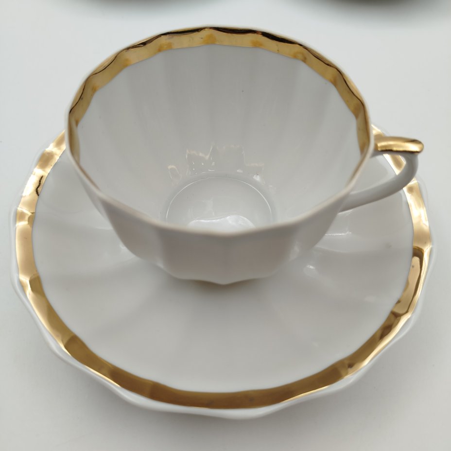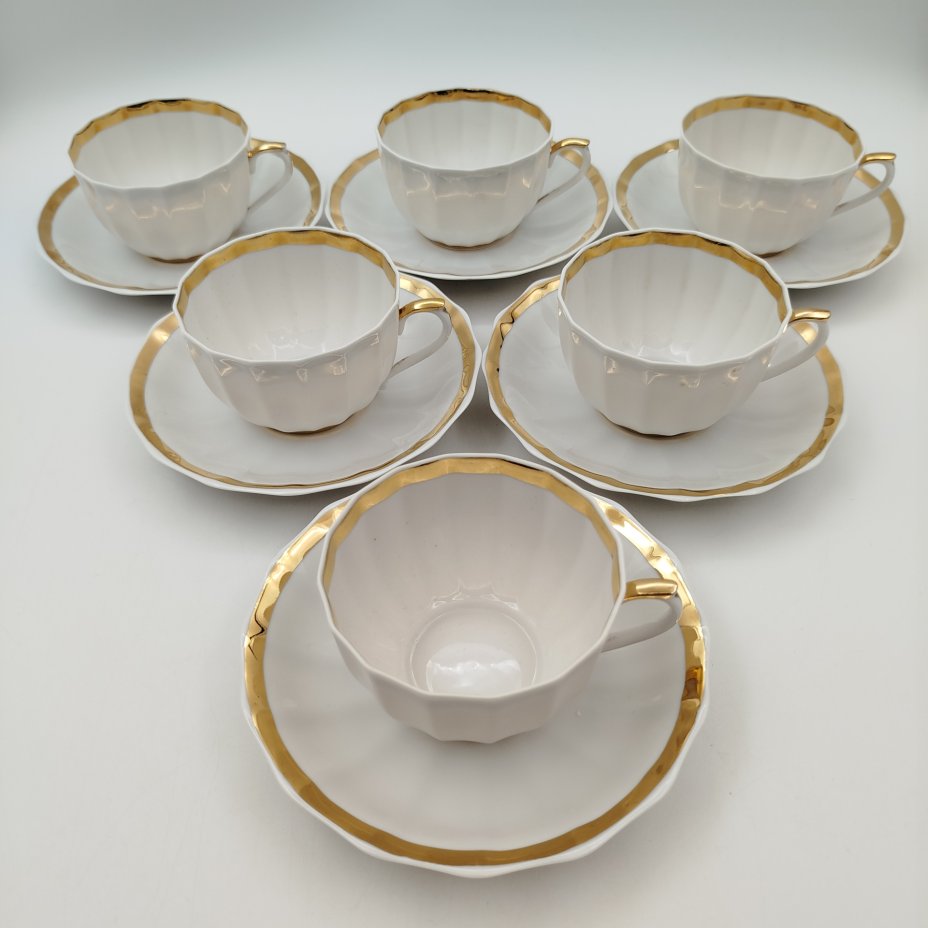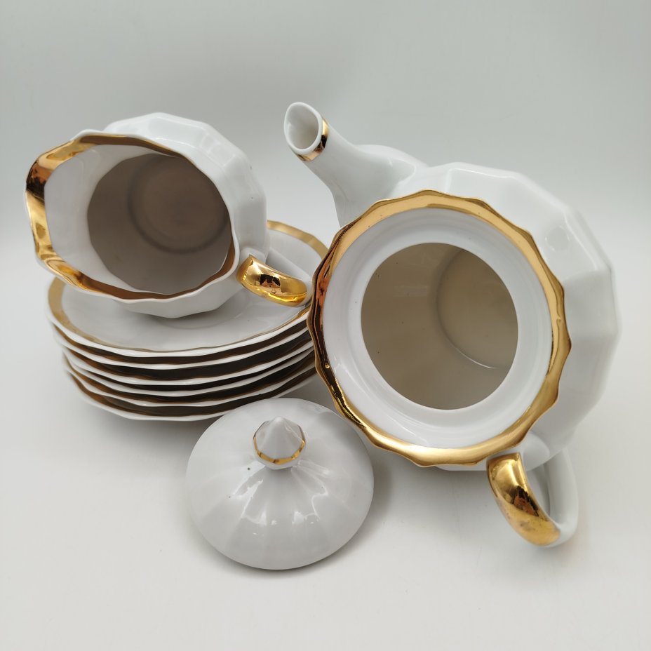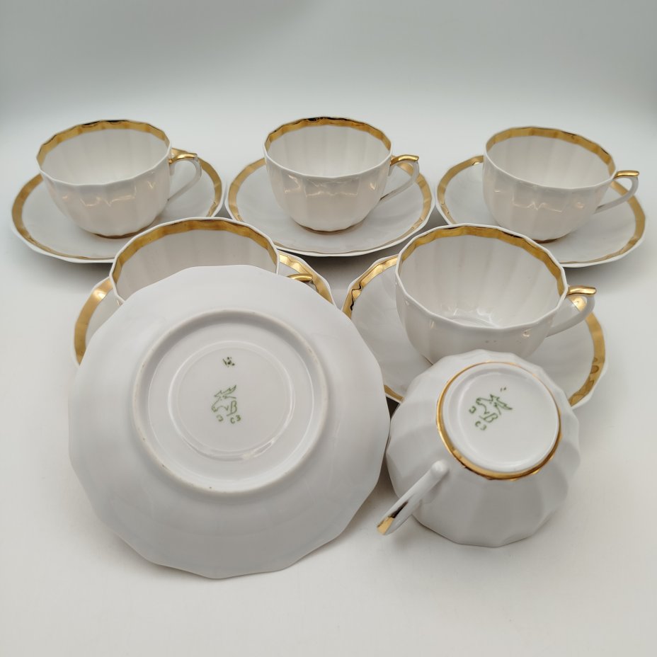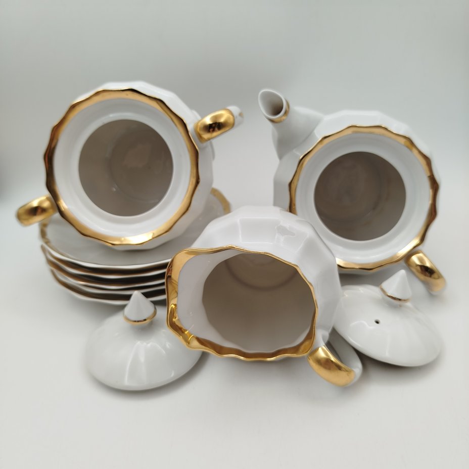Сервиз "Золотая лента" 6 персон (21 предмет), фарфор, золочение, Дмитровский фарфоровый завод (ДФЗ Вербилки), СССР, 1954-1965 гг.