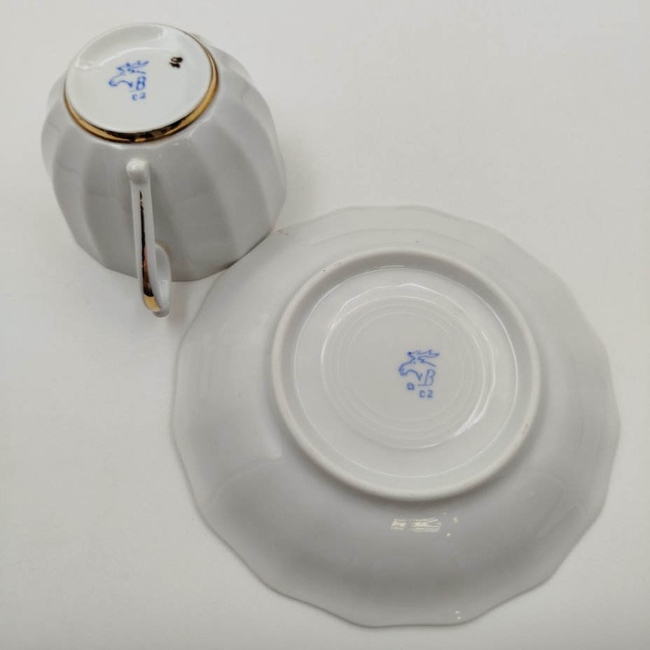 Сервиз "Золотая лента" 3 персоны (9 предметов), фарфор, золочение, Дмитровский фарфоровый завод (ДФЗ Вербилки), СССР, 1954-1965 гг.