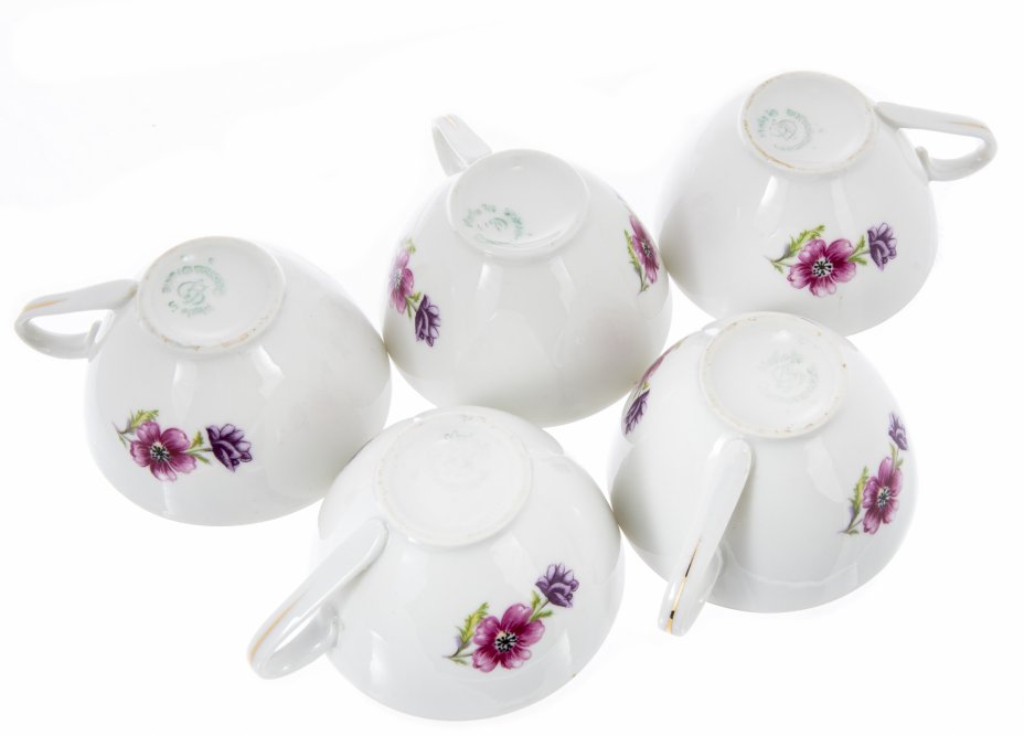Набор чайный с цветочным декором на 5 персон (9 предметов), фарфор, деколь, крытье, золочение, Россия, 1980-2000 гг.