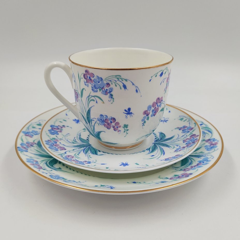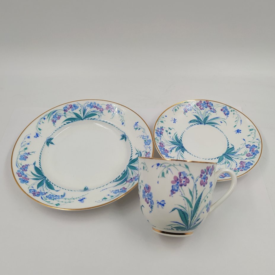 Сервиз кофейный "Гирлянда" на 6 персон (22 предмета), автор формы "Тюльпан" С.Е. Яковлева, автор рисунка Н.Б. Гусева, фарфор, деколь, золочение, Ленинградский фарфоровый завод (ЛФЗ), Российская Федерация, 1992-2001 гг.