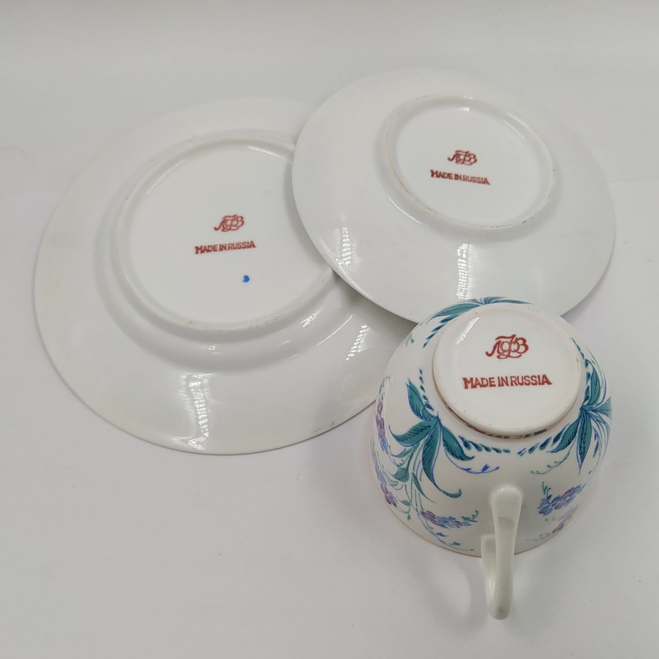 Сервиз "Букет чайных роз" на 5 персон (14 предметов), фарфор, роспись, золочение, Ленинградский фарфоровый завод (ЛФЗ), СССР, 1970-1991 гг.