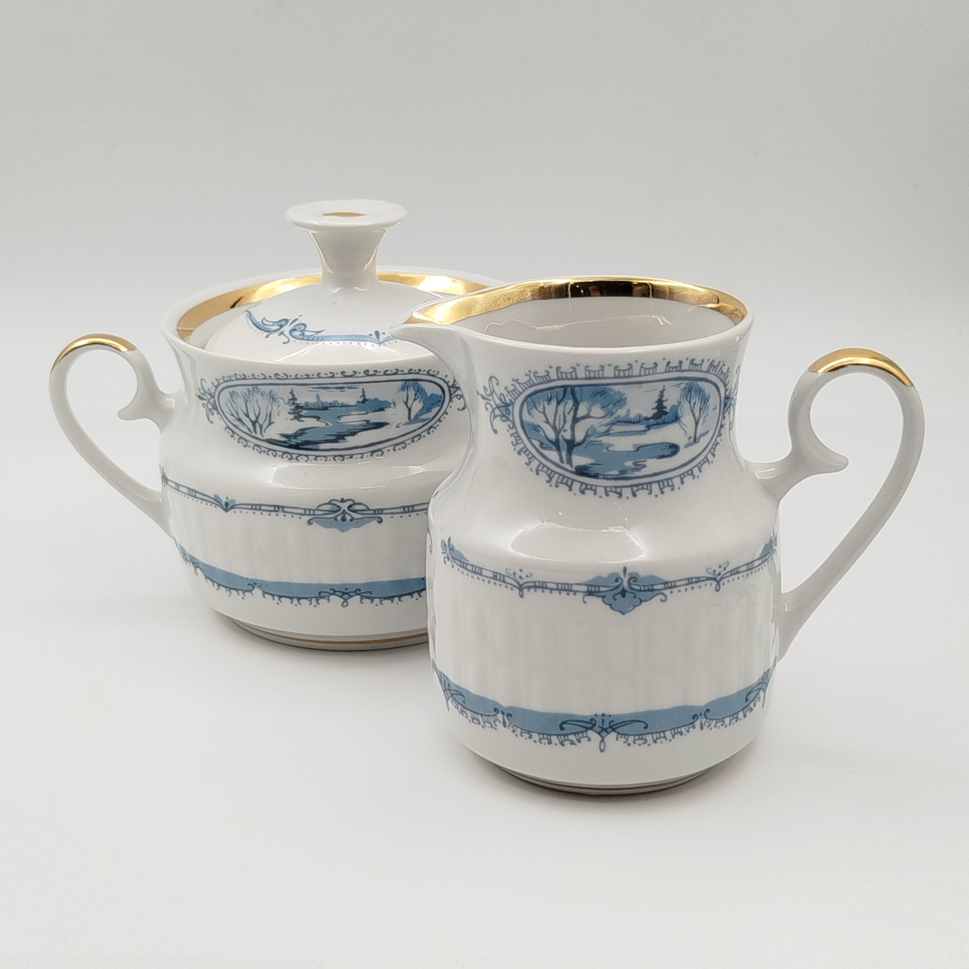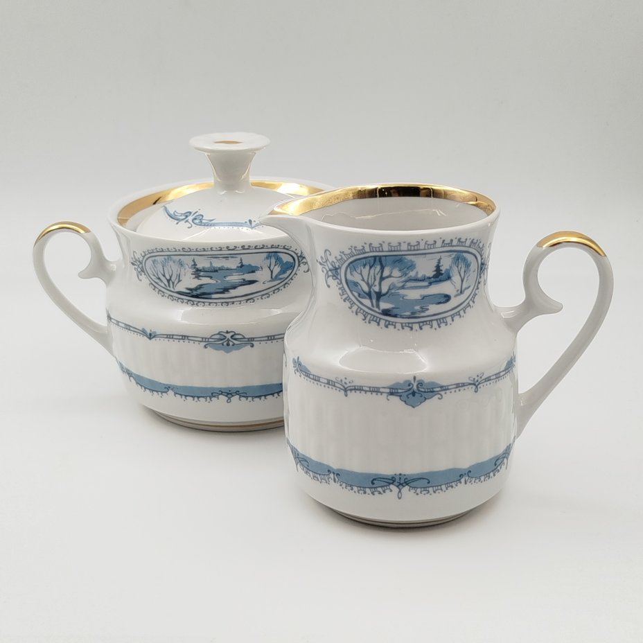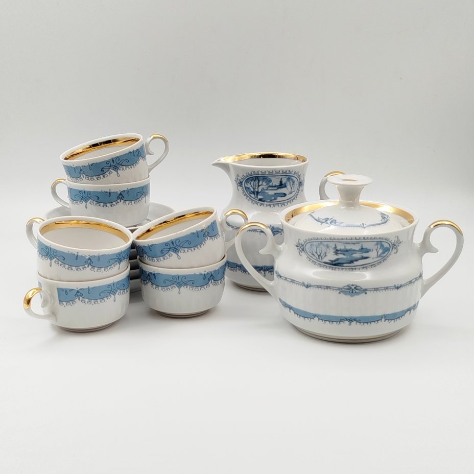Сервиз кофейный "Васильки" на 6 персон (15 предметов), фарфор, деколь, золочение, Фарфоровый завод «Пролетарий» (Бронница, Мста), СССР, 1967-1975 гг.
