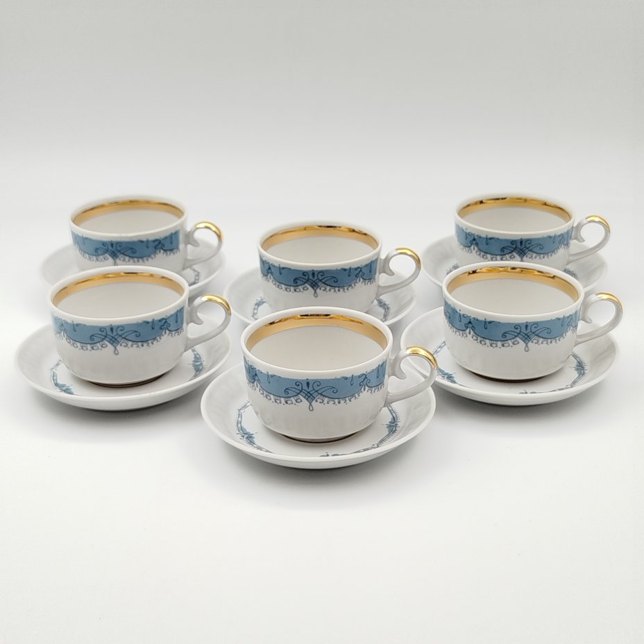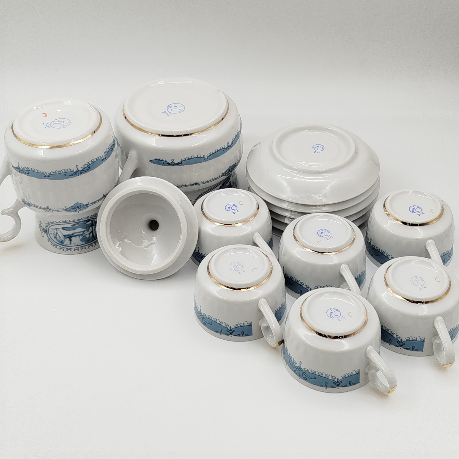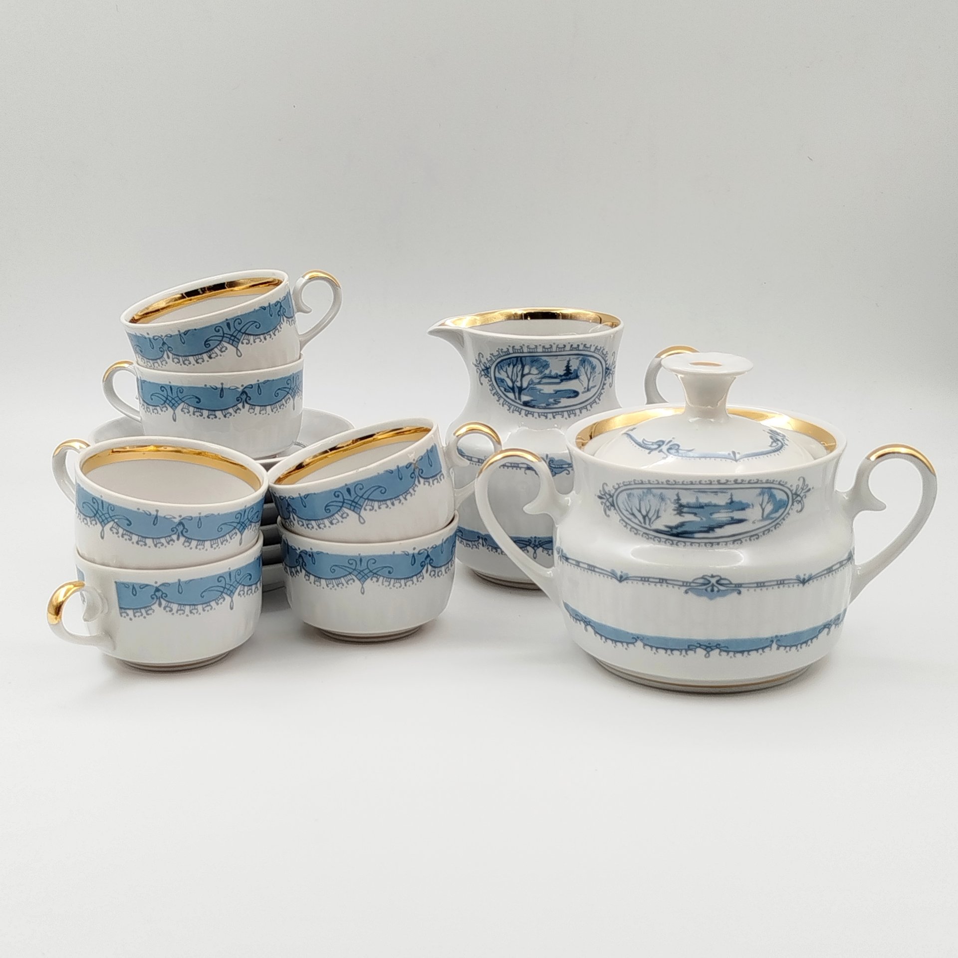 Сервиз кофейный "Фриз" на 6 персон (21 предмет), фарфор, деколь, золочение, Ленинградский фарфоровый завод (ЛФЗ), СССР, 1970-1991 гг.