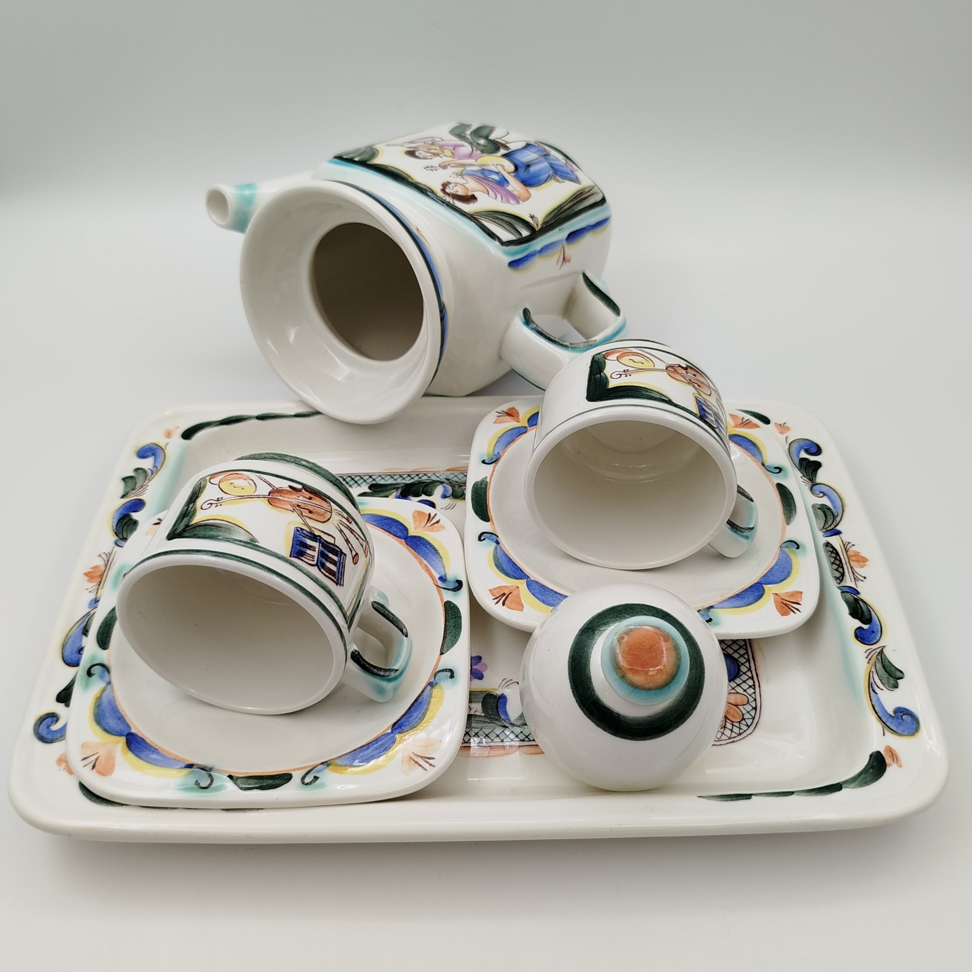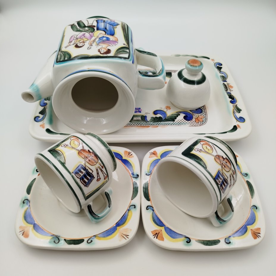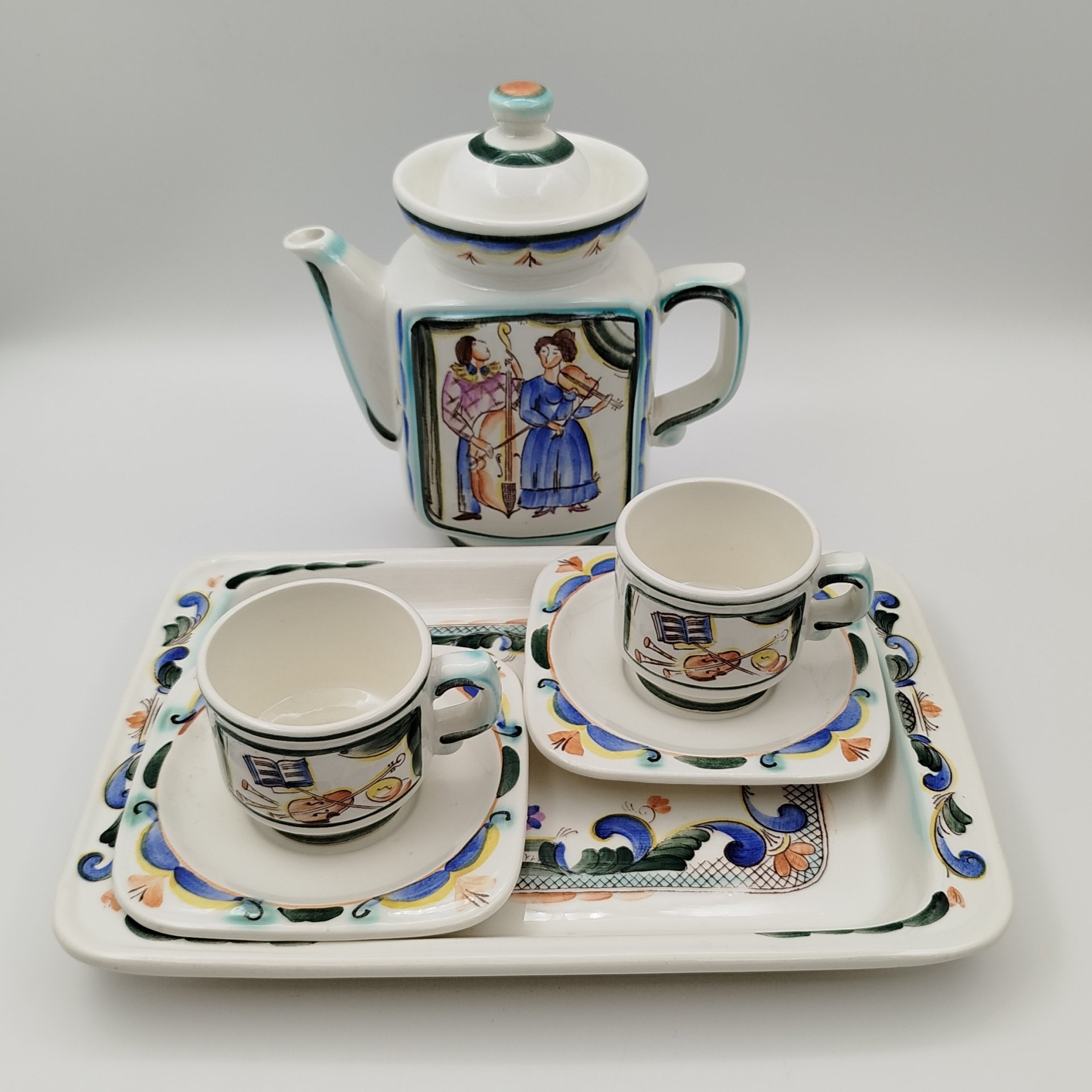 Сервиз кофейный "Галантная сцена" на 3 персоны (9 предметов), фарфор, деколь, люстр, золочение, FP Zajecar, Югославия, 1970-1980 гг.
