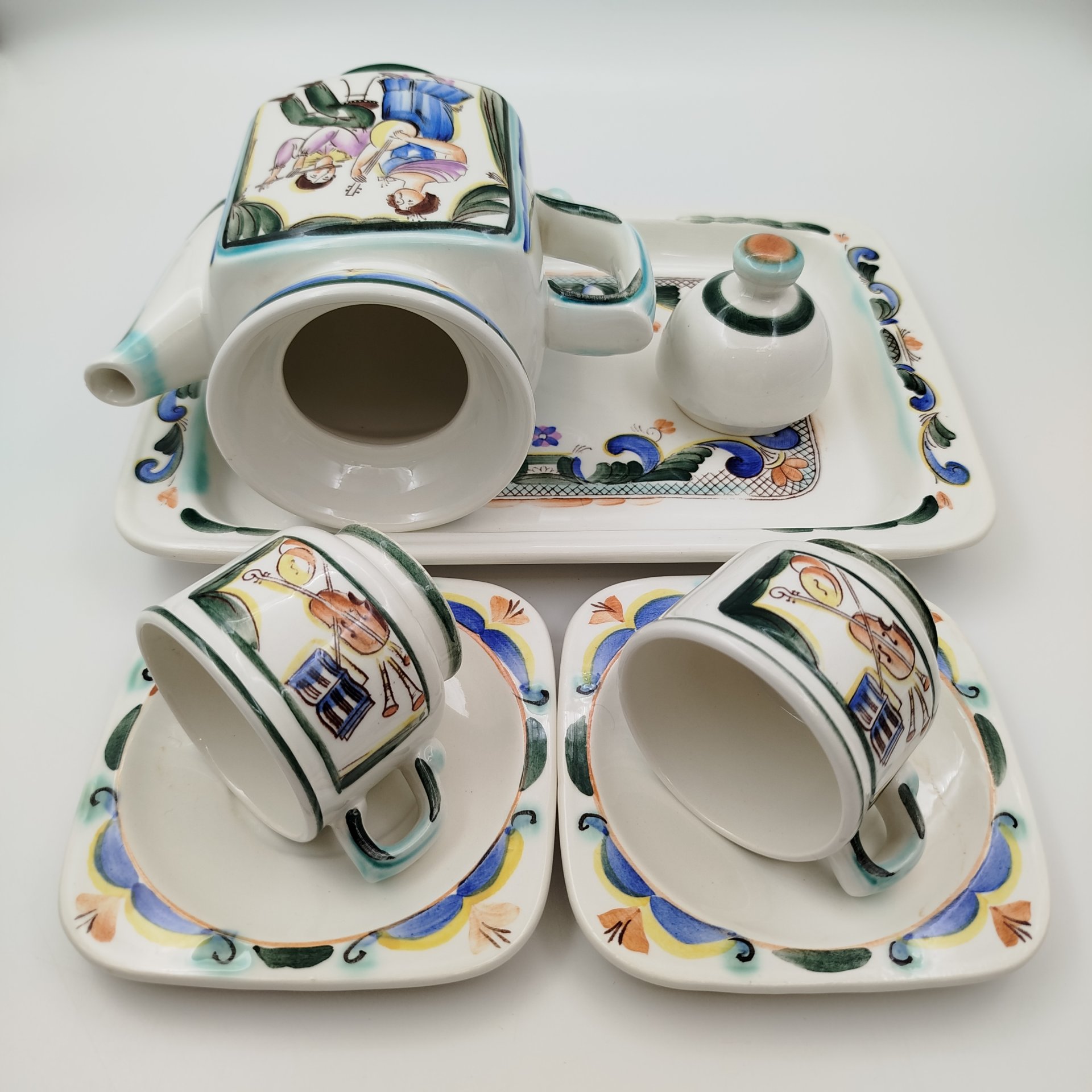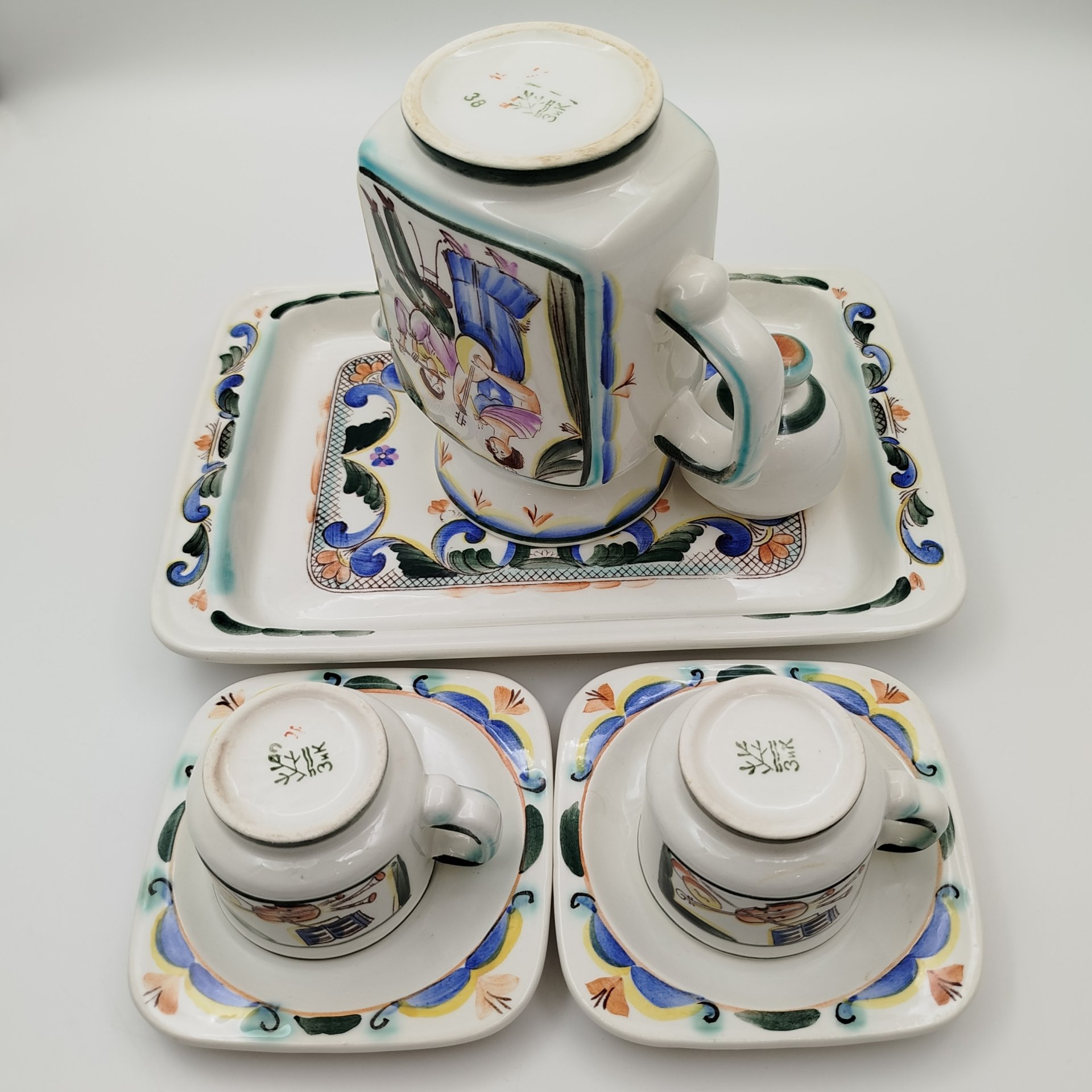 Купить Сервиз кофейный "Галантная сцена" на 3 персоны (9 предметов), фарфор, деколь, люстр, золочение, FP Zajecar, Югославия, 1970-1980 гг.