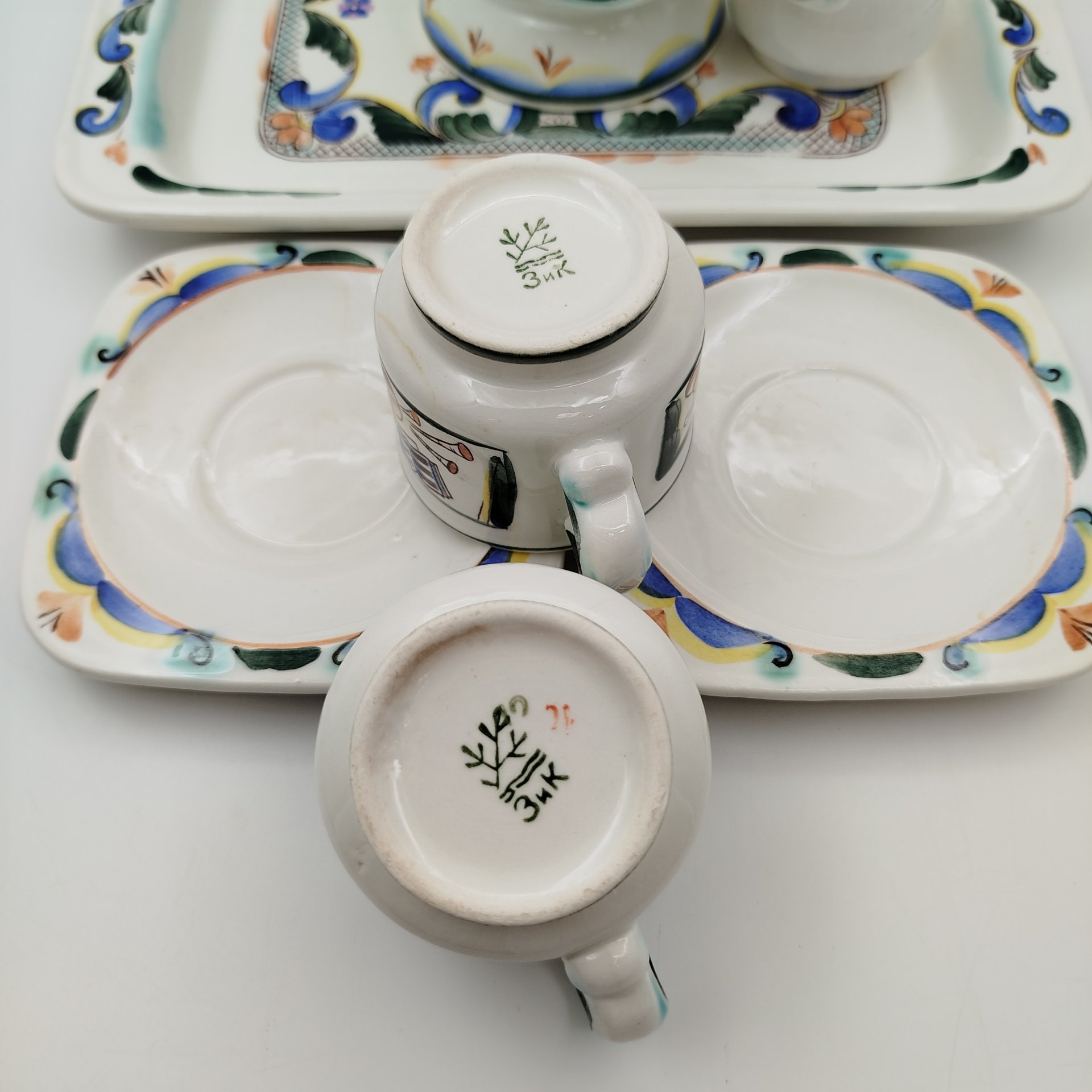 Сервиз кофейный с геометрическим декором на 6 персон (15 предметов), автор Данута Душняк, фарфор, роспись, Chodziez, Польша, 1964-1980 гг.