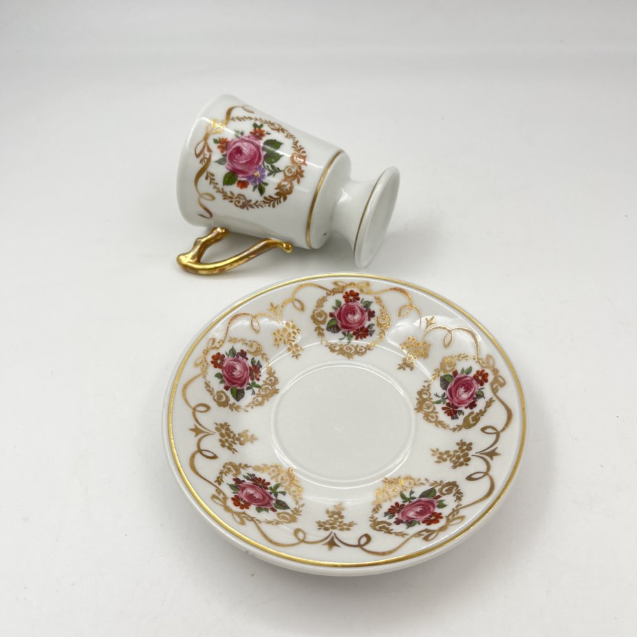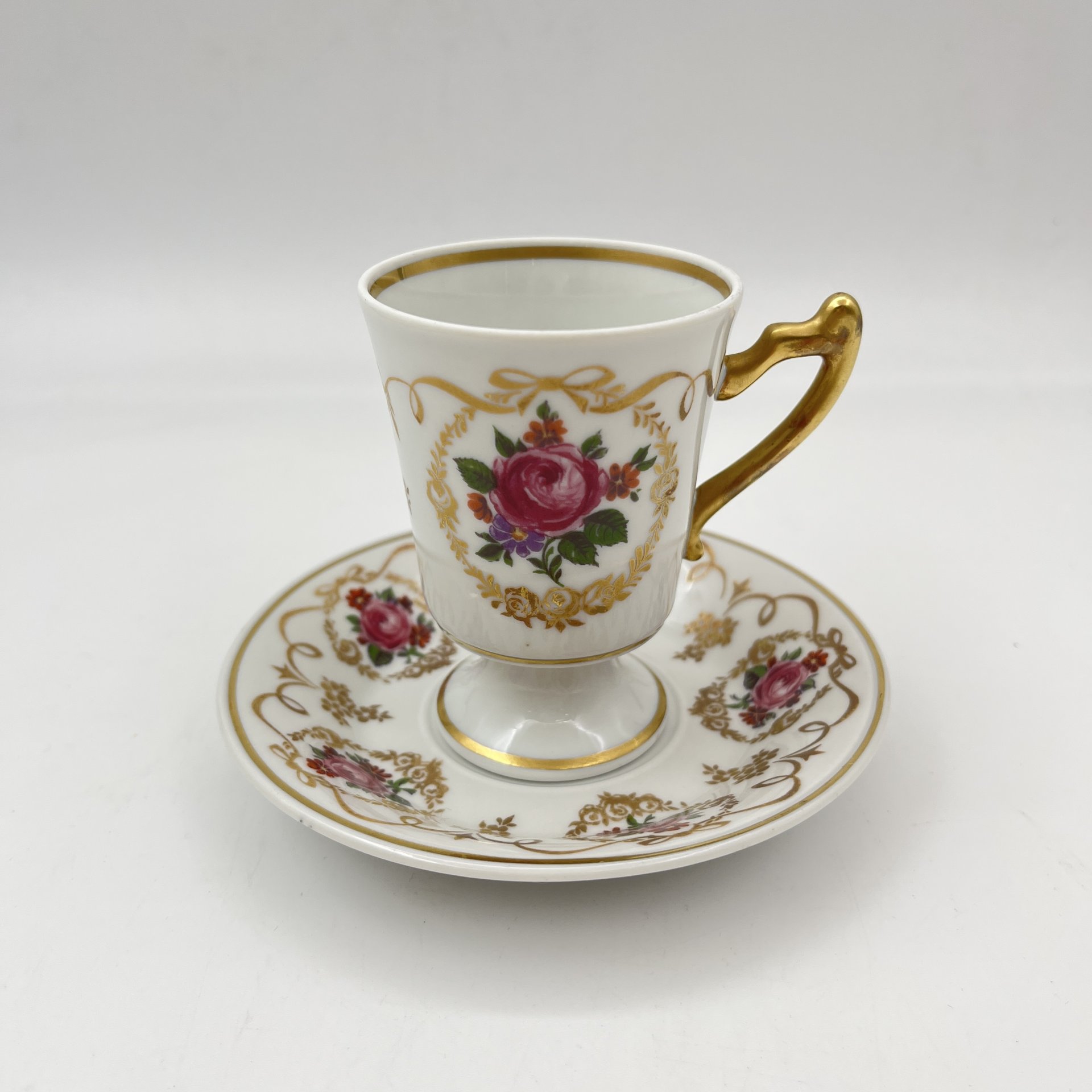 Пара кофейная с декором из роз, фарфор, деколь, золочение, Западная Европа, 1970-1990 гг.